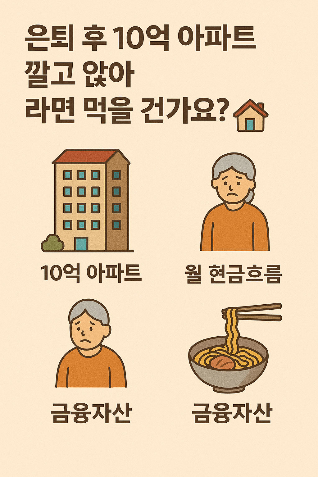 - 은퇴 직전 애매한 10억 아파트를 무리해서 사는 것은 기회비용이 너무 큰 결정입니다.