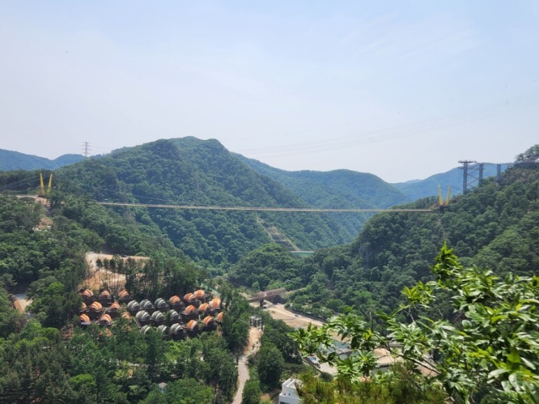 출렁다리 맞은 편으로 보이는 울렁 다리 저곳까지 돌고 내려오면 총 소요 시간이 2시간으로 늘어났기 때문에 저녁 시간을 고려해서 출렁다리 만 보고 중간에 내려 왔다