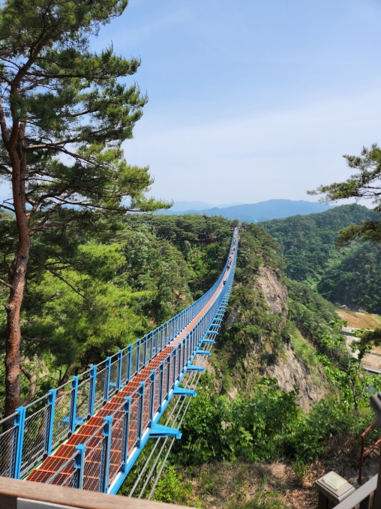 깎아지른듯한 절벽 옆으로 설치된 출렁다리