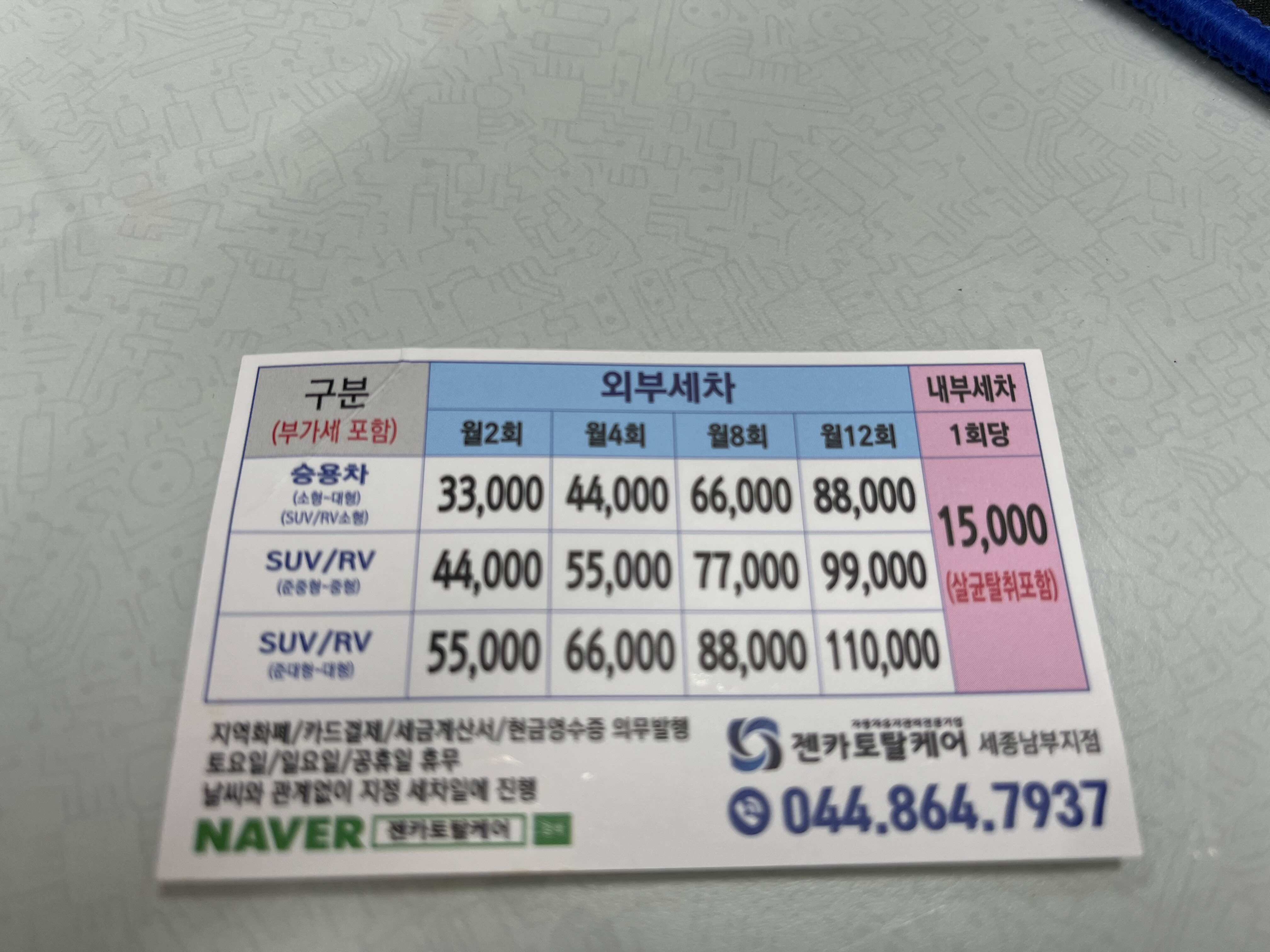 준대형 기준 월 4회 66,000원