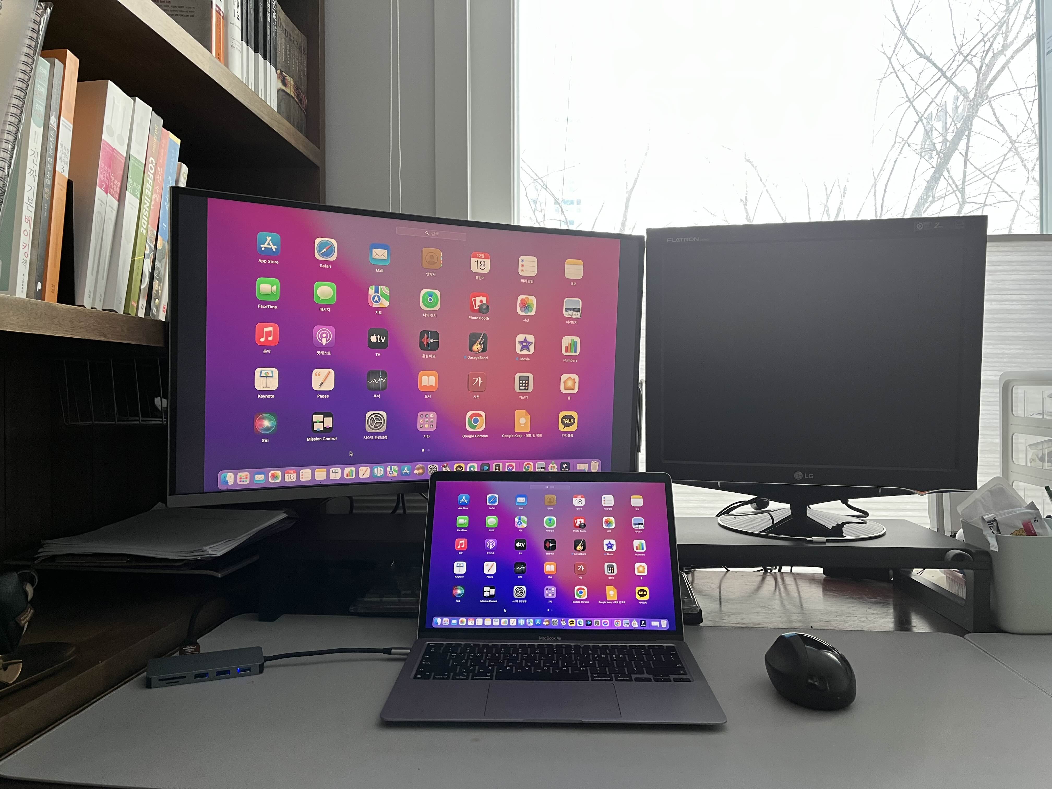 작은 맥북보단 아무래도 큰게 나으니 한번 연결해봤다.