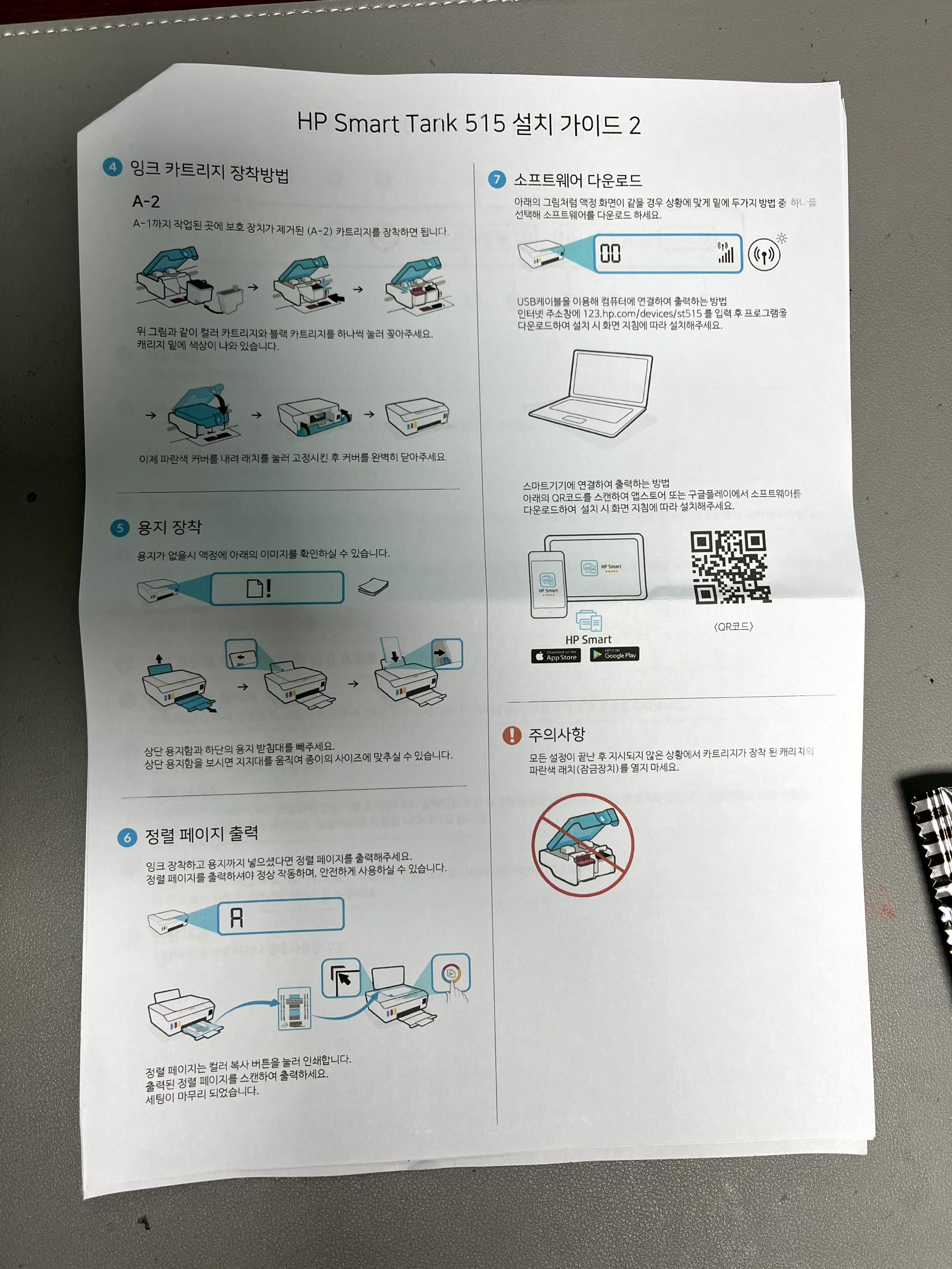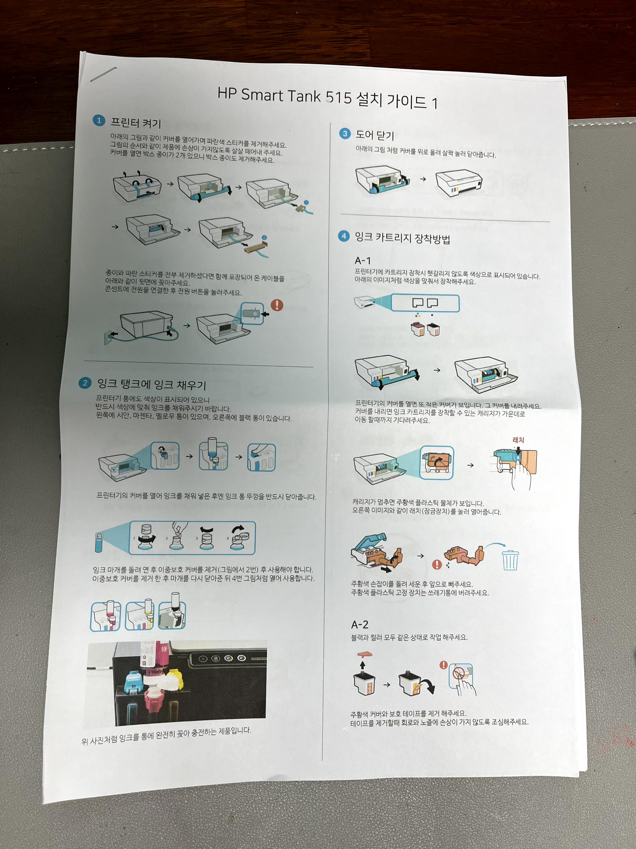 새 프린터는 처음 사봐서 카트리지 까지 넣어야 되는건 몰랐다.