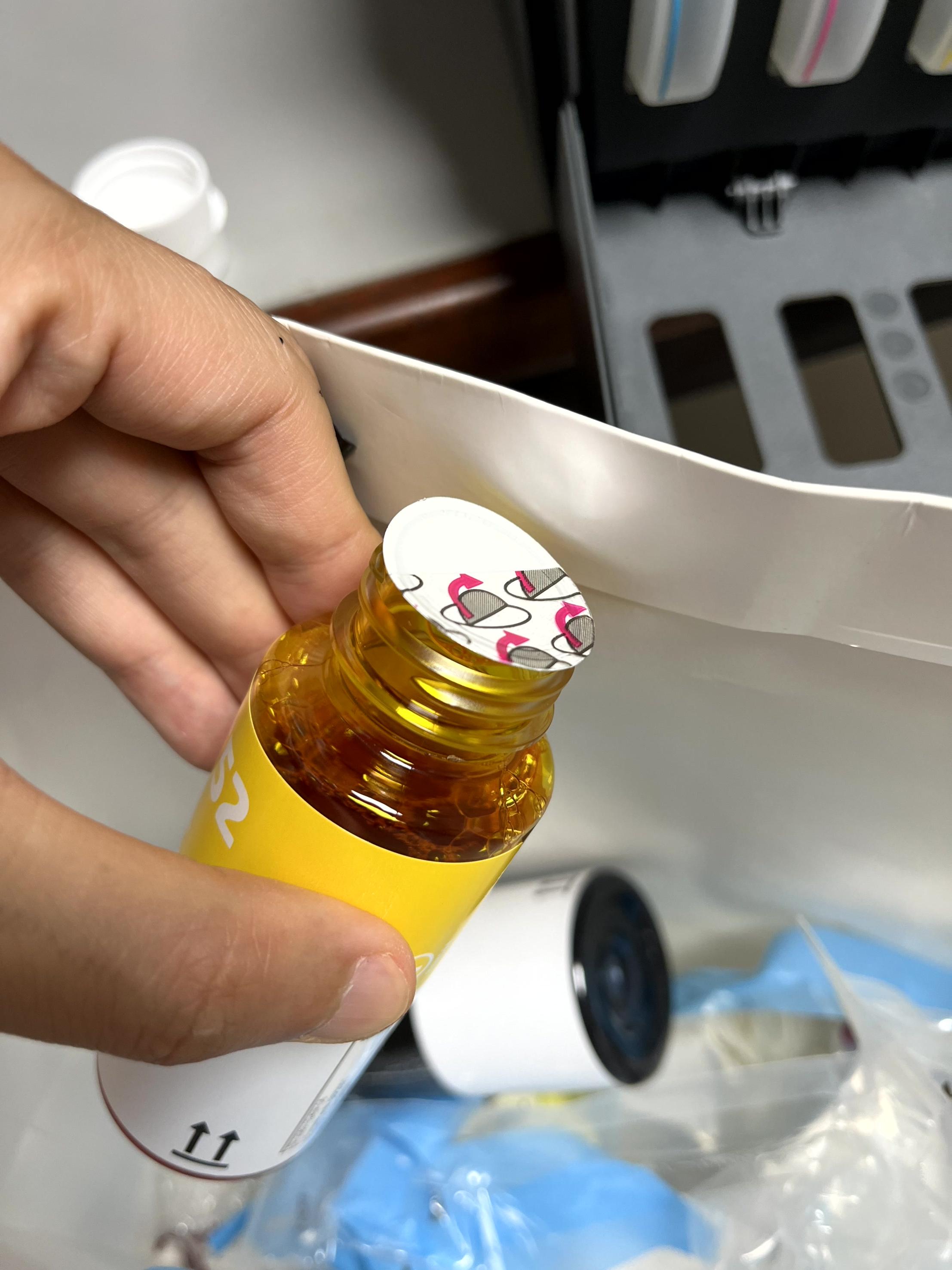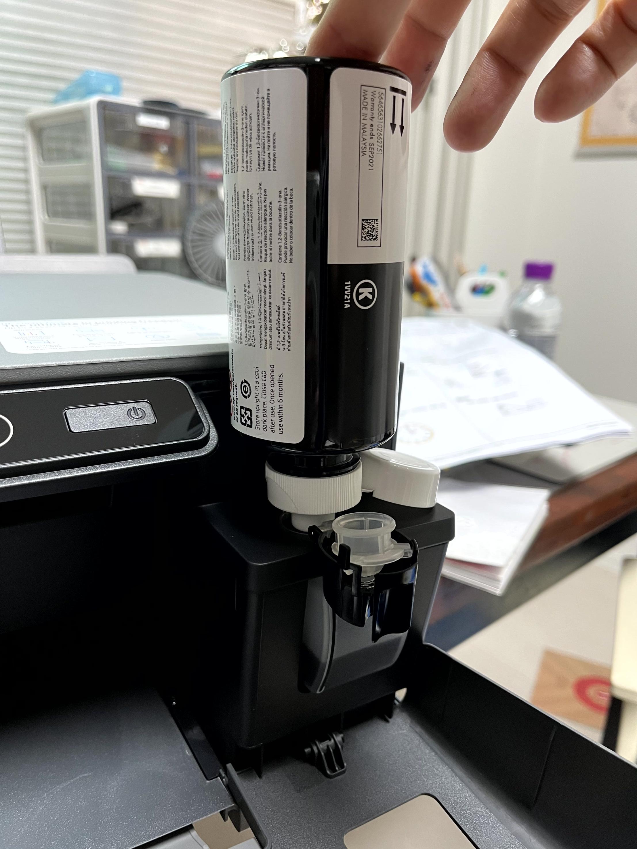 정말 쉽고 깔끔하게 잉크만 채우면 될 줄 알았으나 잉크 안 속마개를 따느라 손에 묻어버렸다.