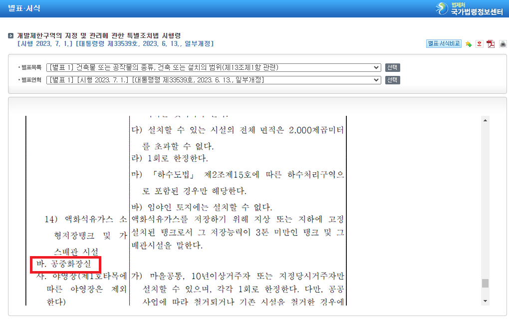 ㅇ 개발제한구역의 지정 및 관리에 관한 법률 특별조치법 시행령제13조 제1항의 별표1