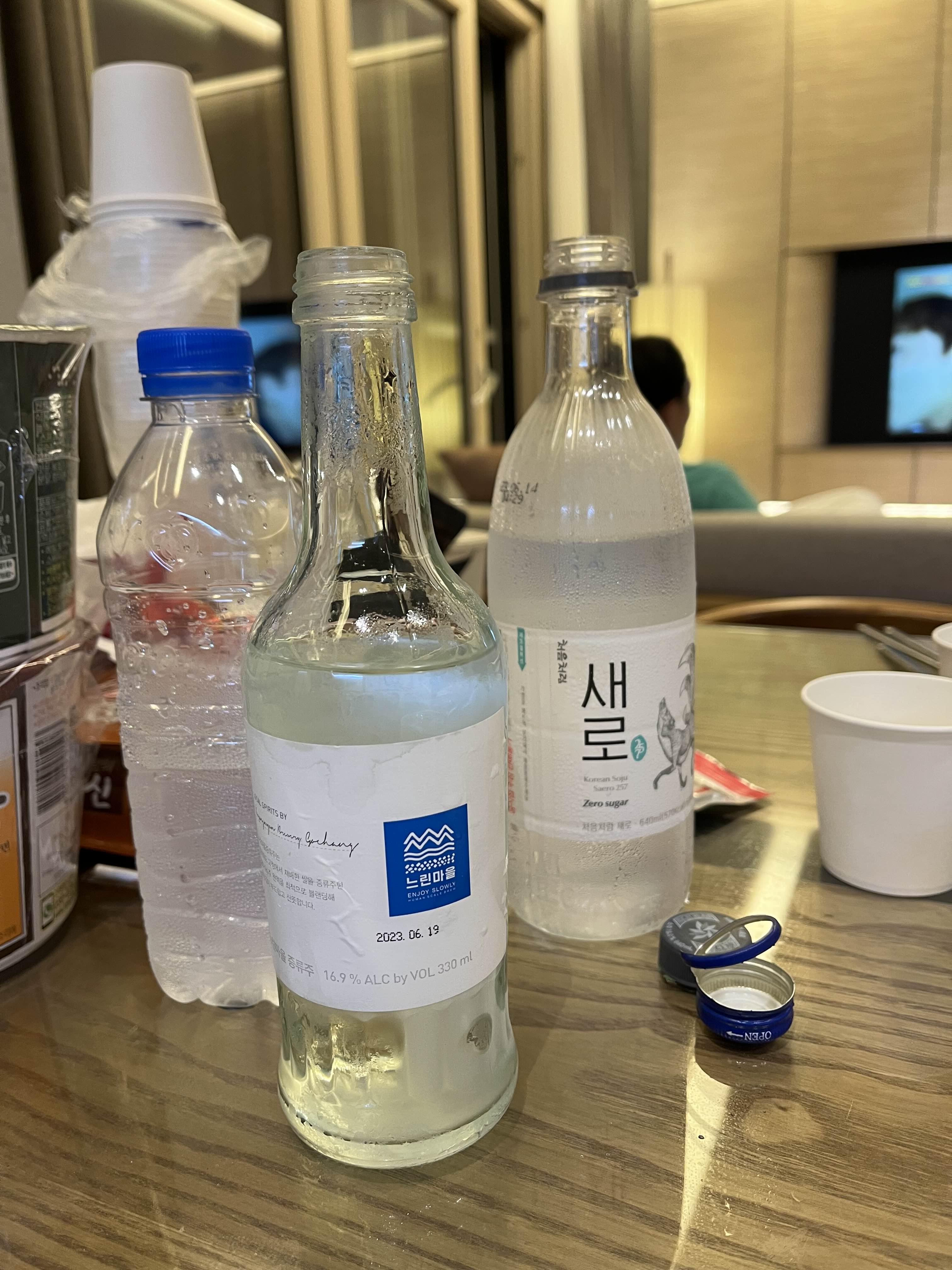 일반 소주는 맛이 강하지 않아서 음식이랑 잘 어울리는데 느린마을은 강해서 입안에 향이 깊게 남는다.