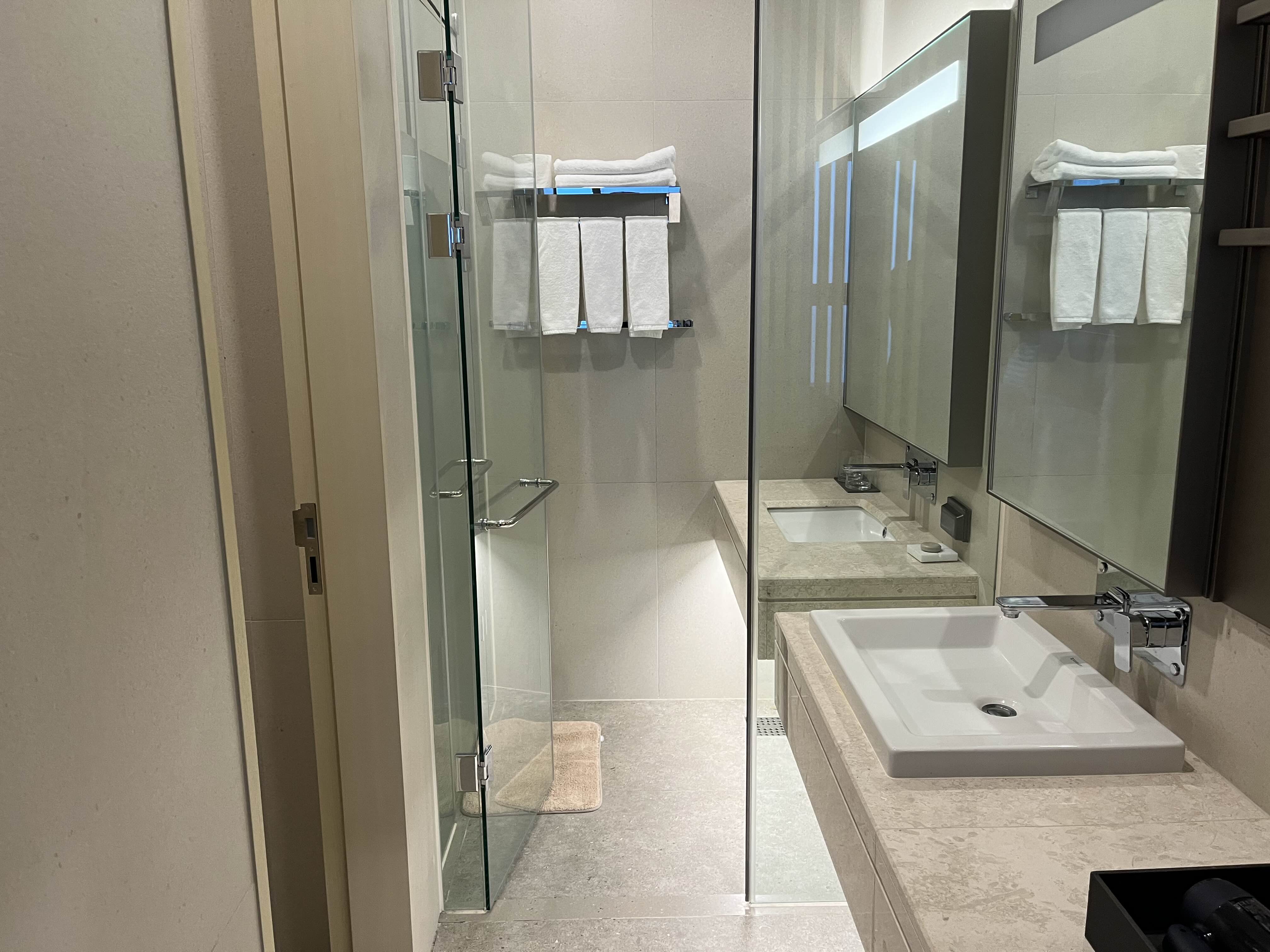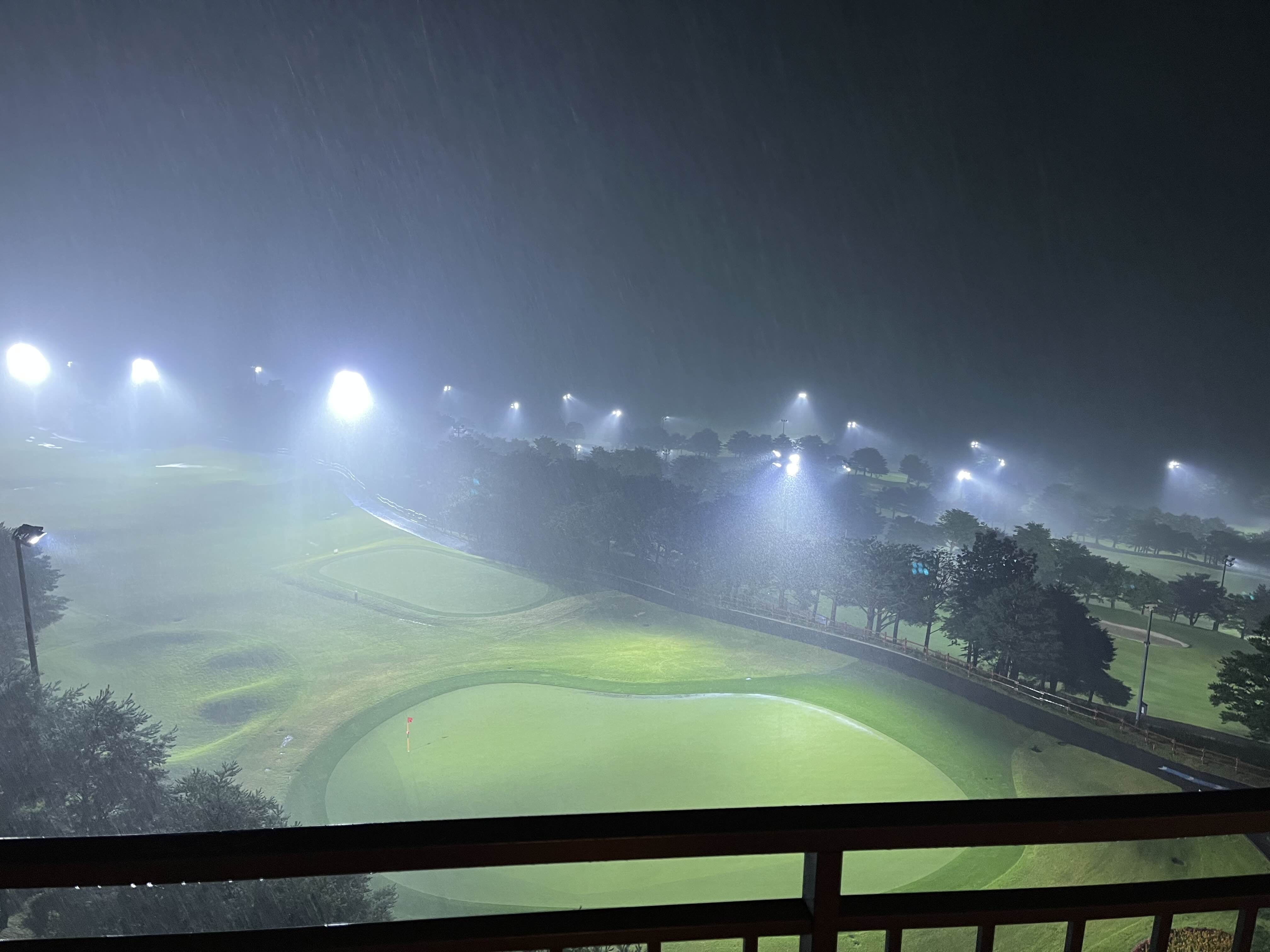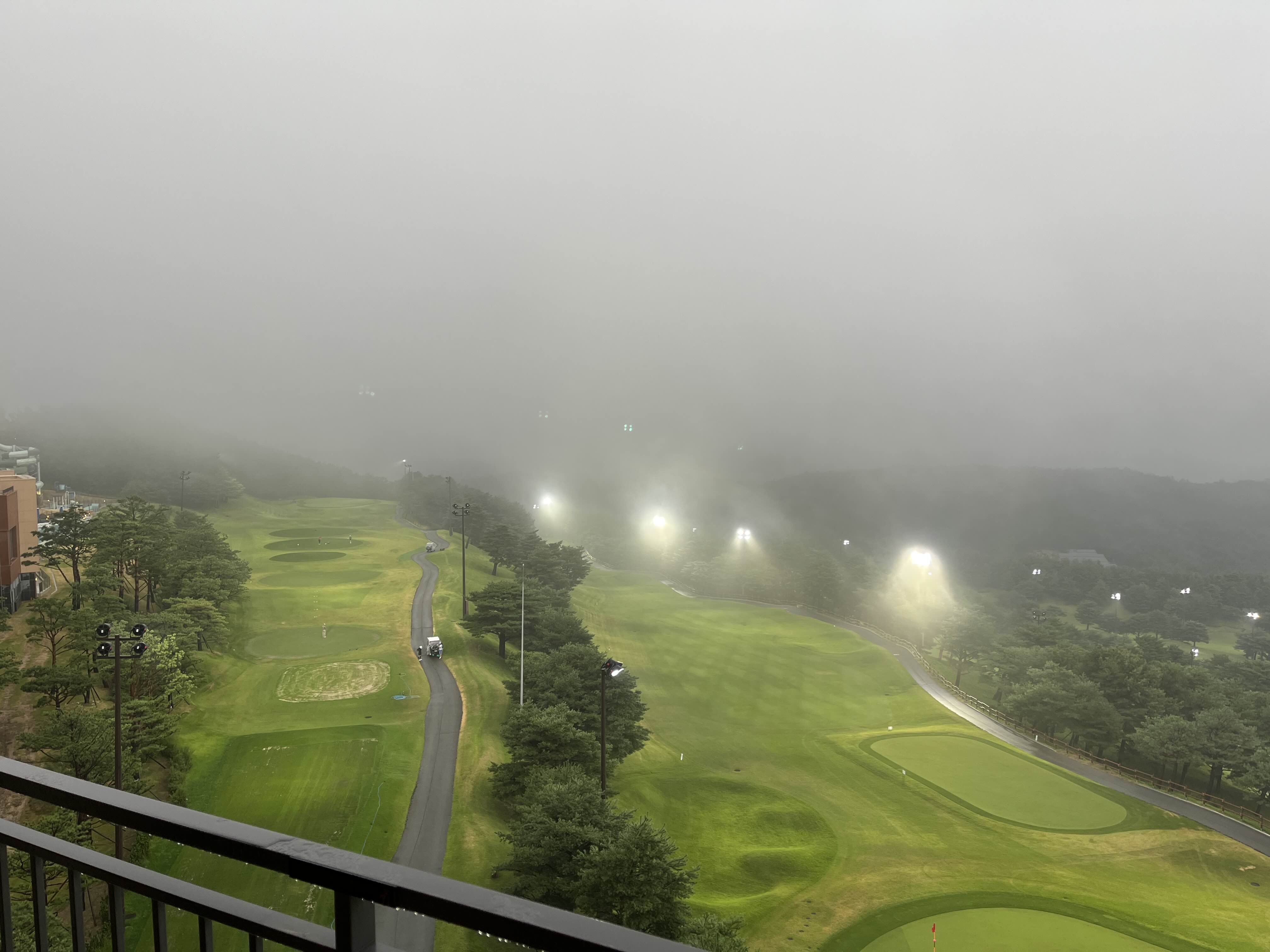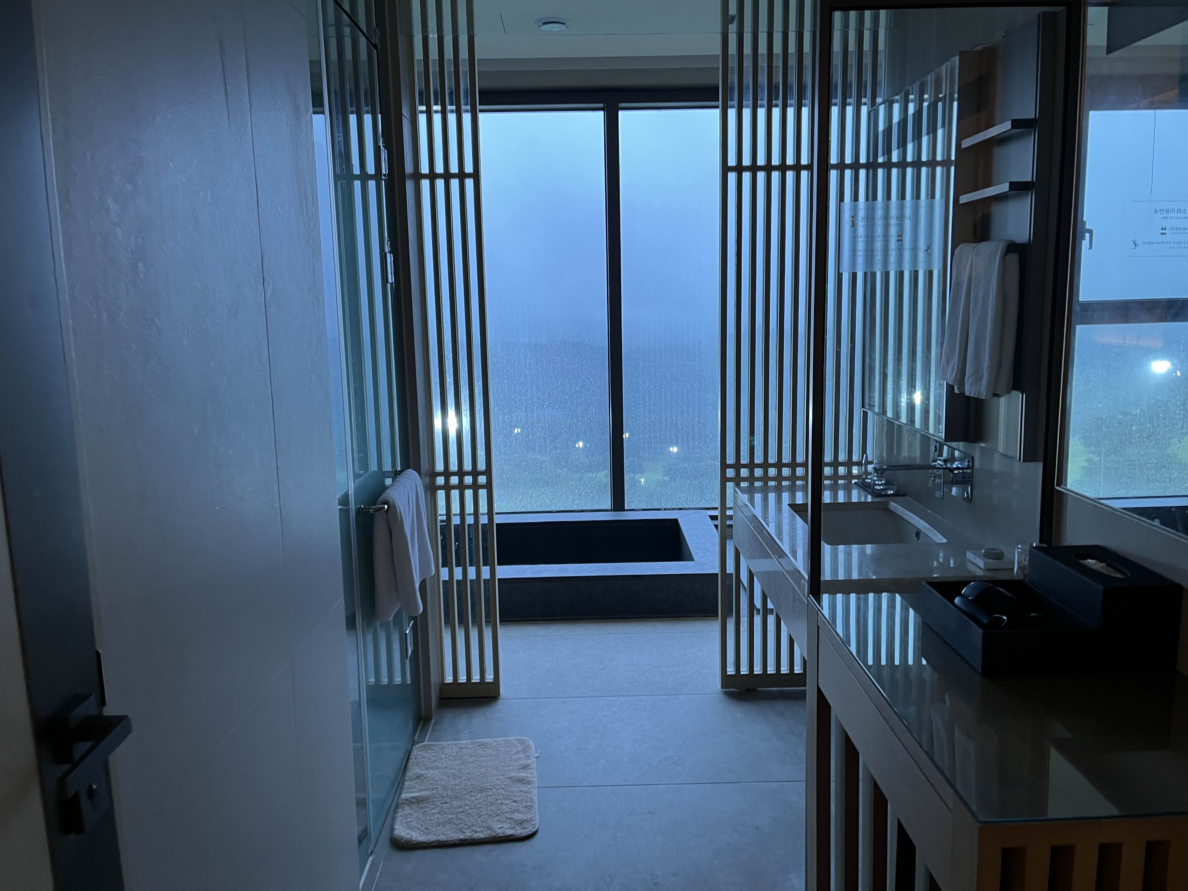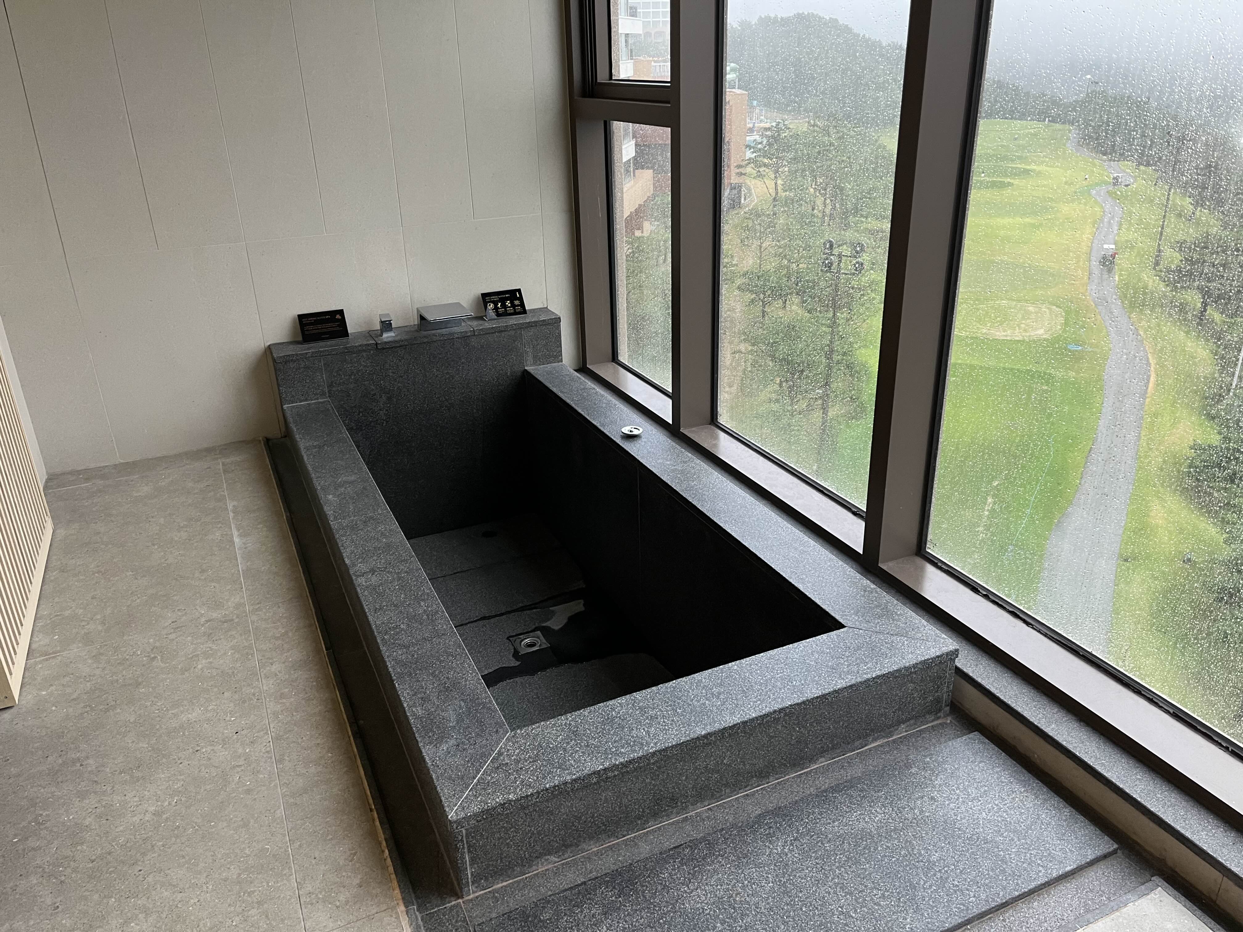 끝방에서 자쿠지를 통해 밖을 본 풍경