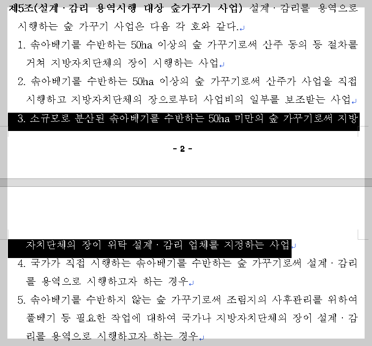 솎아베기 50ha미만이더라도 지방자치단체의 장이 위탁 설계·감리 업체를 지정하는 사업은 가능하다.