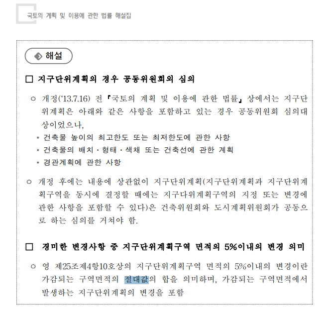 □ 경미한 변경사항 중 지구단위계획구역 면적의 5%이내의 변경 의미