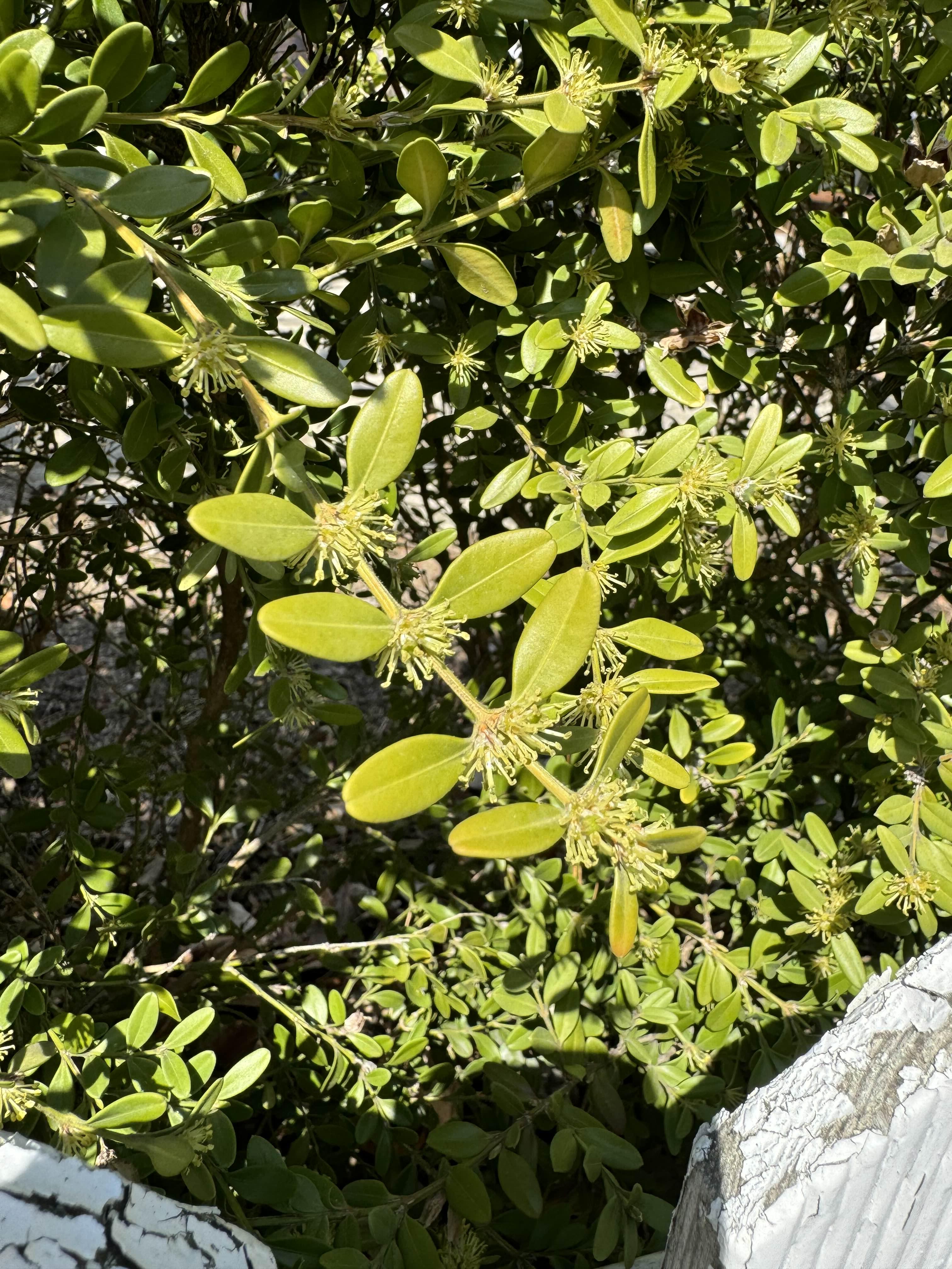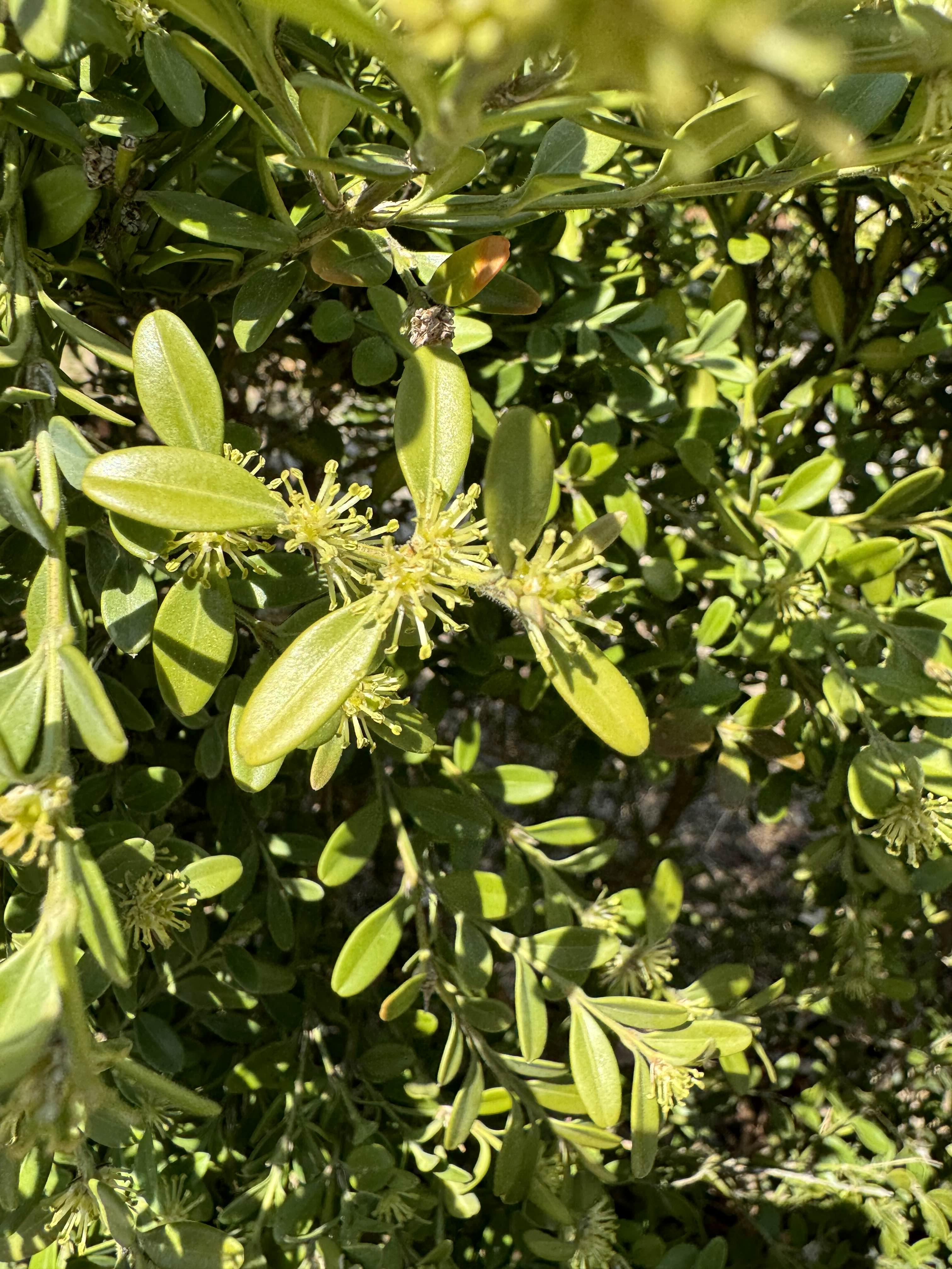본론으로 돌아와 회양목은 3월 꽤 이른 시기에 꽃을 피운다. 그런데 잎과 꽃의 색이 모두 녹색이어서 눈에 잘 들어오지 않는다. 자세히 보아야 보인다.