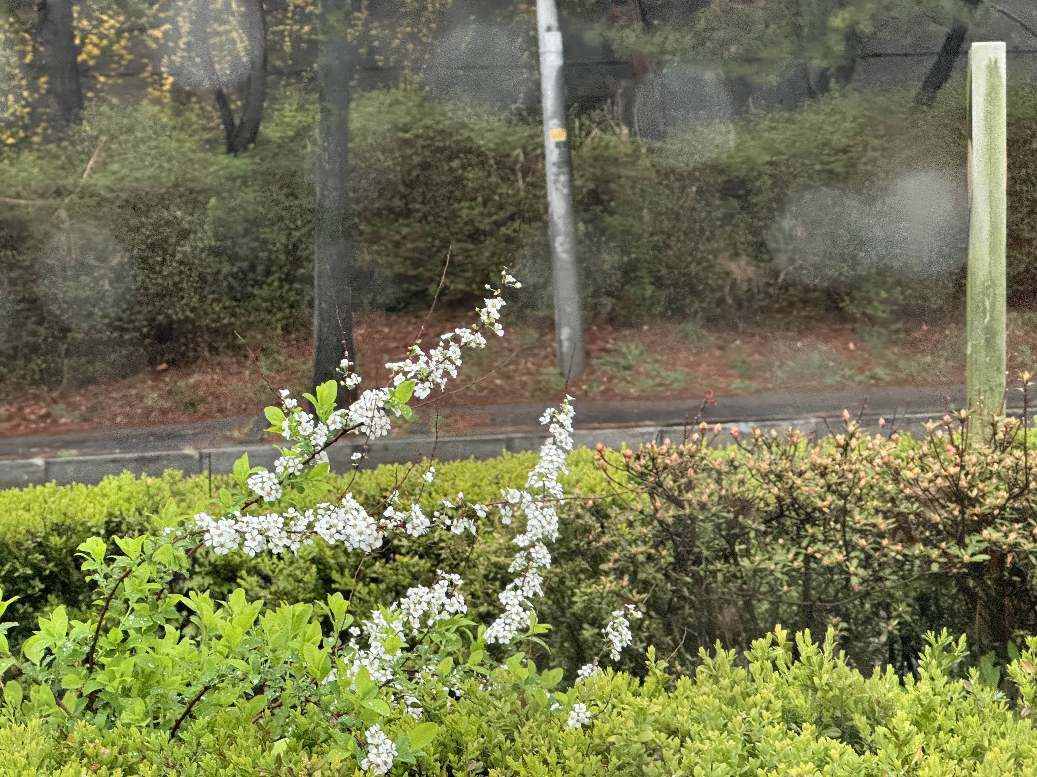 봄비가 내리는 와중에 싱그럽게 피어난 조팝나무 꽃