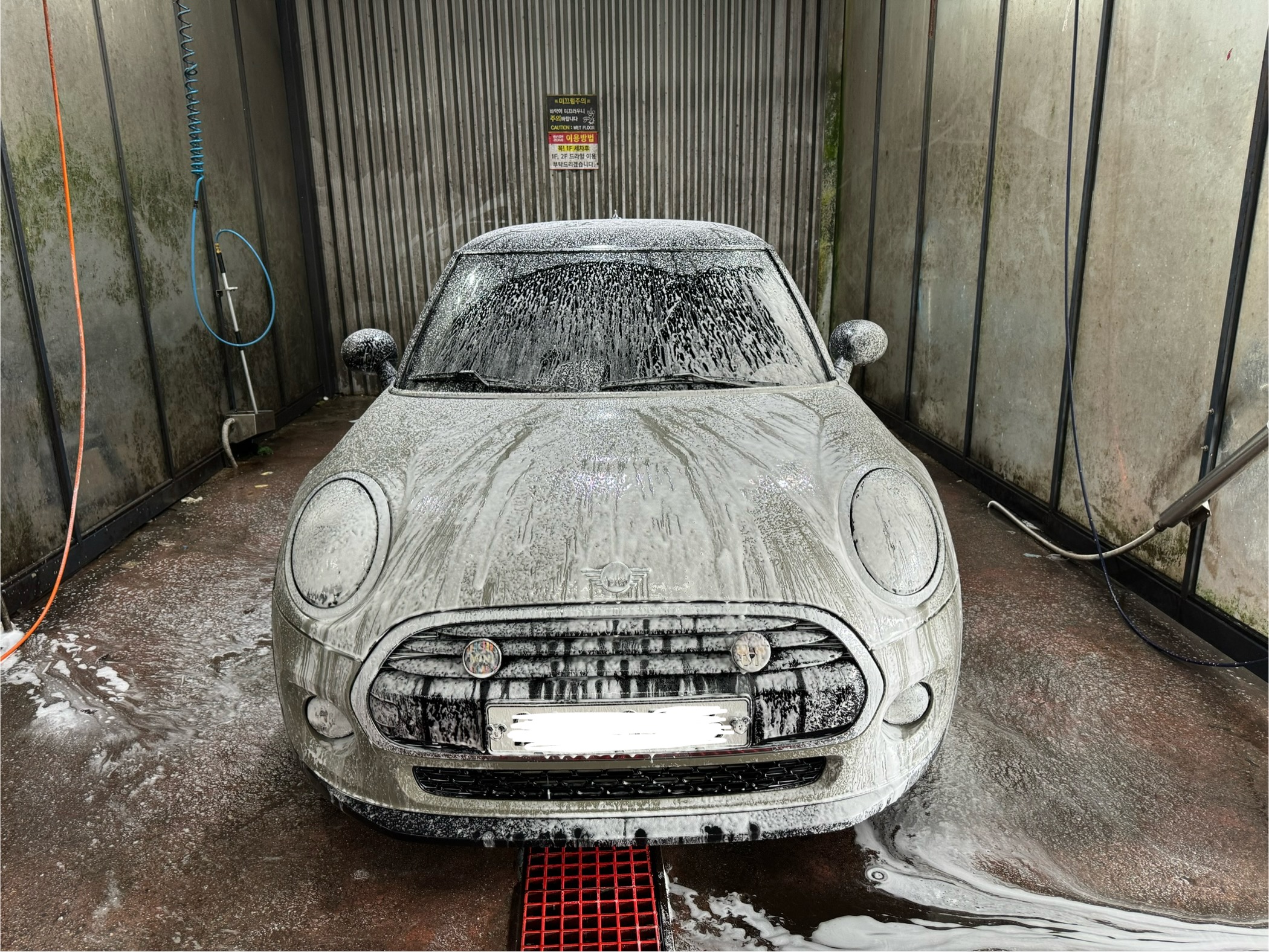 와이프 차 세차해주러 토요일 아침 일찍부터 차를 갖고 나왔습니다. 차가 작은 만큼 세차도 정말 편합니다.