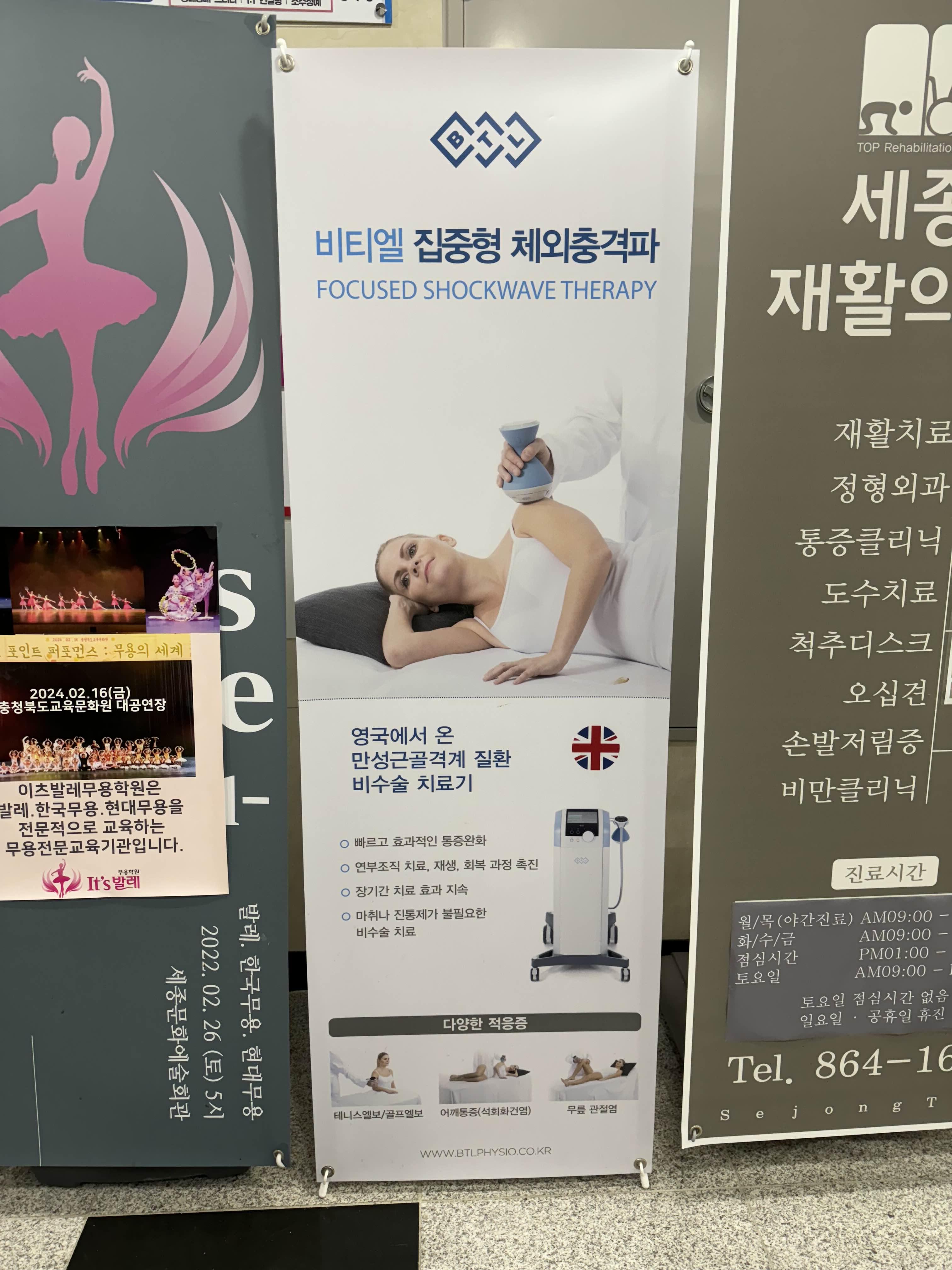 좀 아프긴 하지만 체외충격파 치료가 좋긴 합니다.