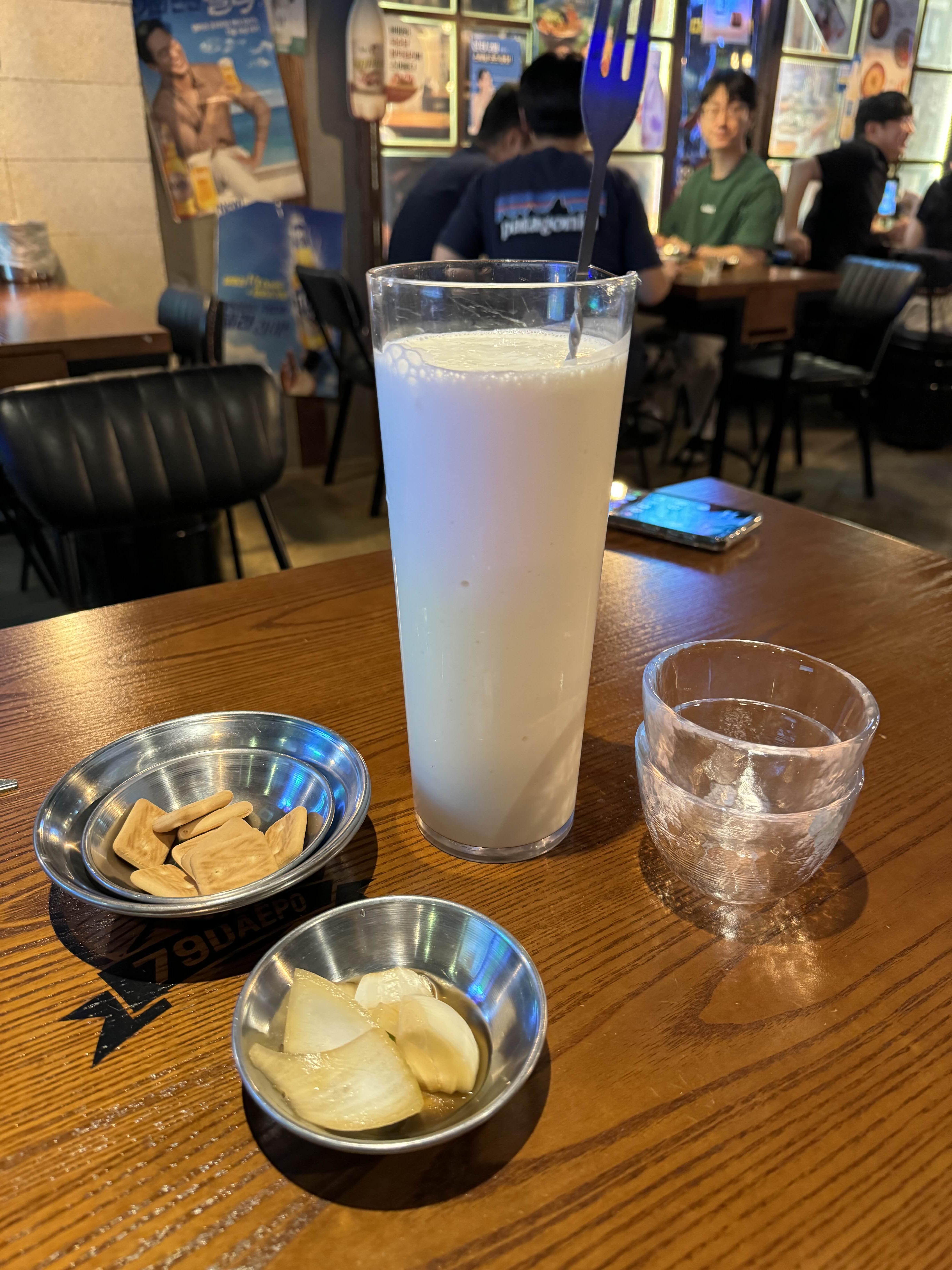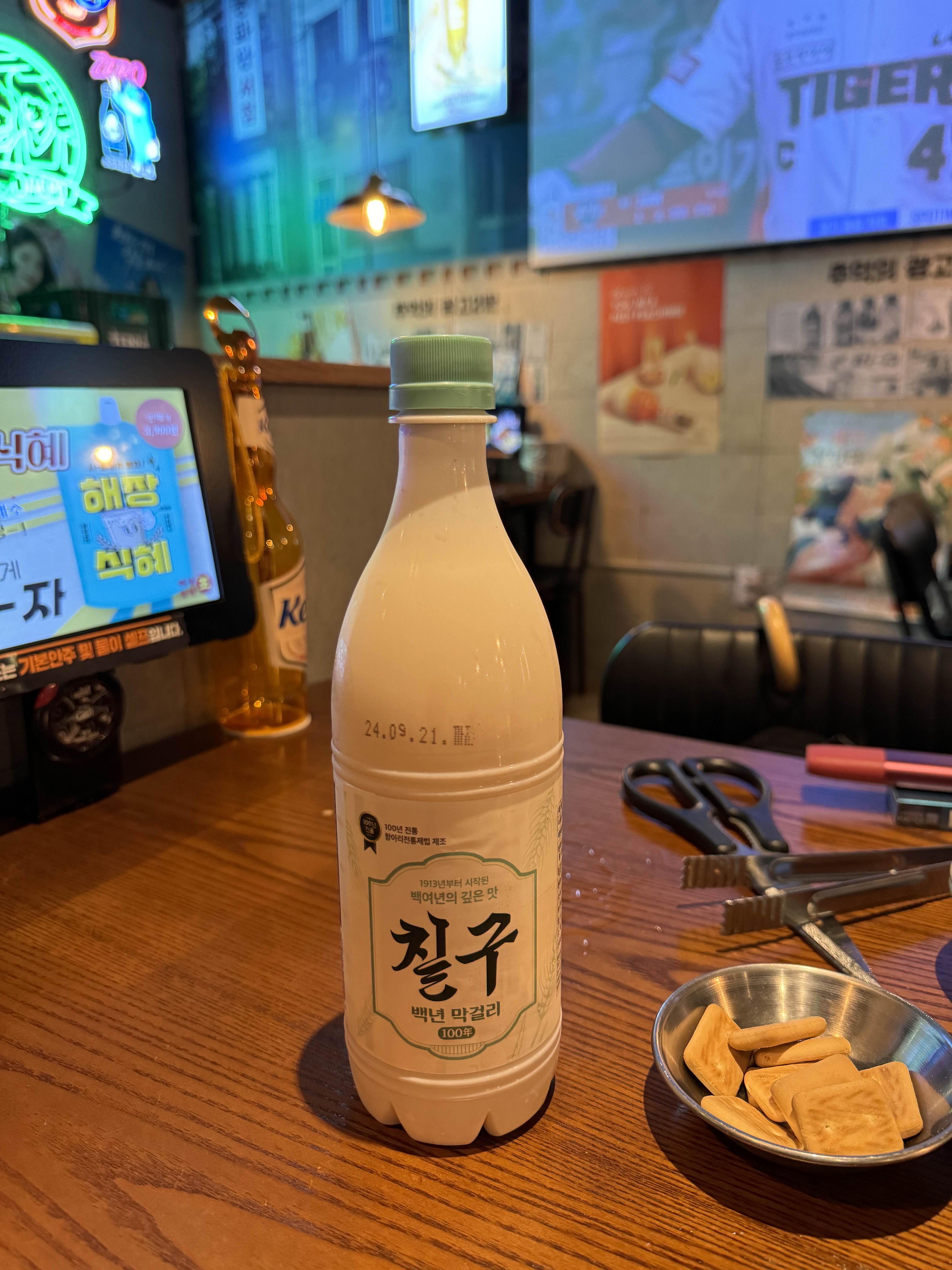 특이한 메뉴가 많은데 그 중 시켜본 칠구막걸리는 클래식한 맛.