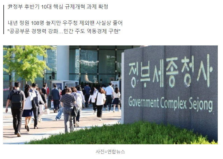 정부가 내년도 공무원 정원을 사실상 감축하면서 ‘작은 정부’ 기조를 본격화한다. 윤석열 정부 국정 후반기에 중점적으로 추진할 10대 핵심 규제개혁 과제도 확정했다. 비대해진 공공부문 몸