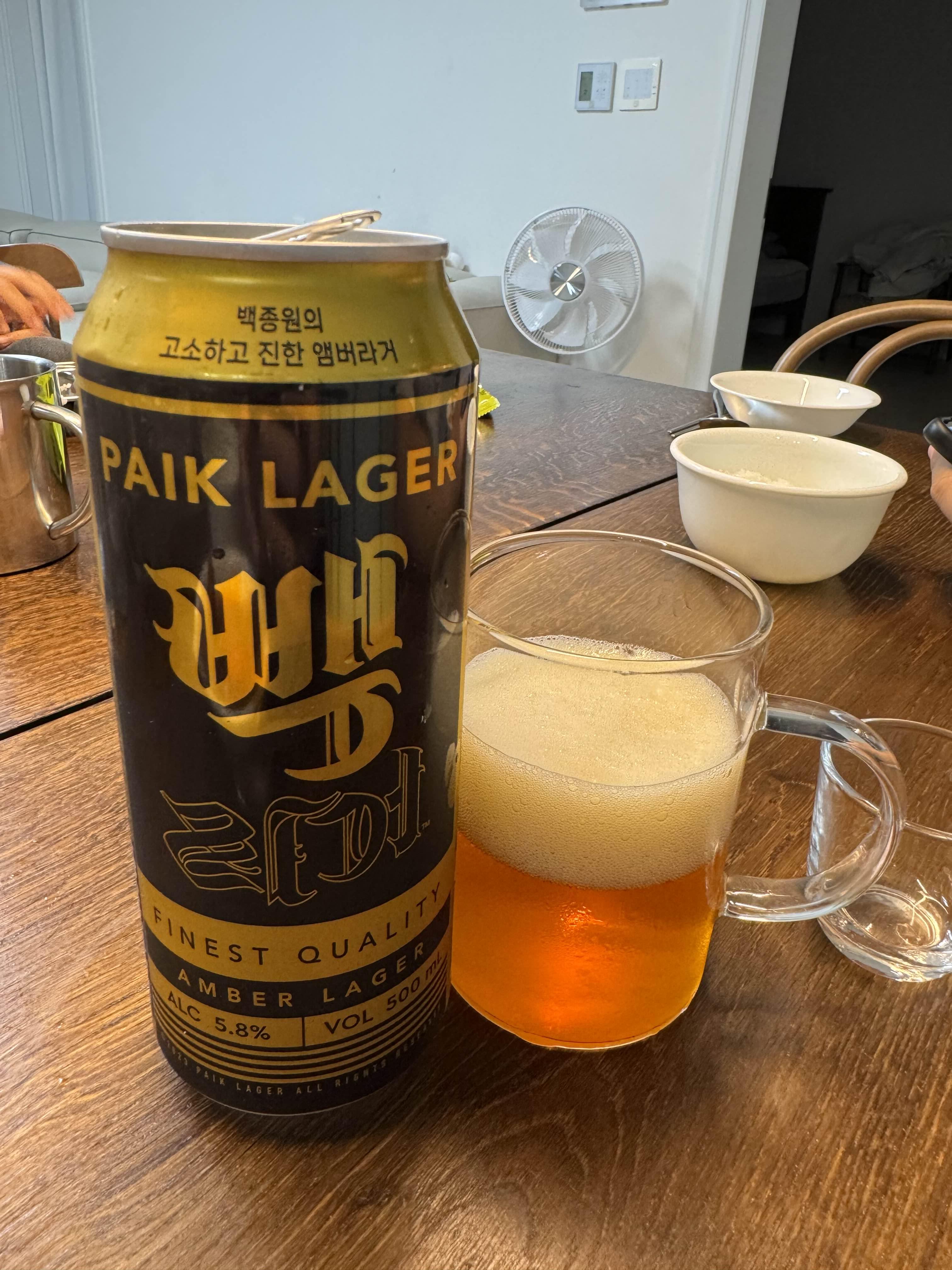 곰표맥주 밀맥주 같은 느낌이납니다. 약간의 쓴맛이 있어 음식과 페어링하는 것보단 단독으로 맥주만 마시면 더 잘 어울릴 것 같다는 생각입니다. 도수도 5.8도라서 생각보다 높네요.