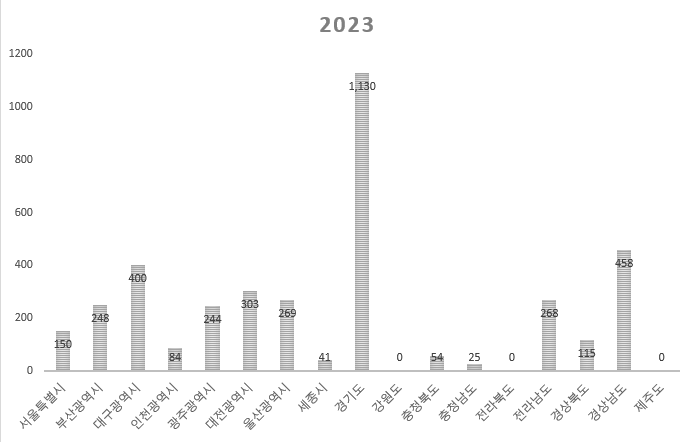 광역도로 보면 경기도가 압도적입니다. 그다음으로 경상남도와 전라남도 순입니다. 광역시는 대구가 가장 넓고, 그 다음 대전이 잇고 있네요.