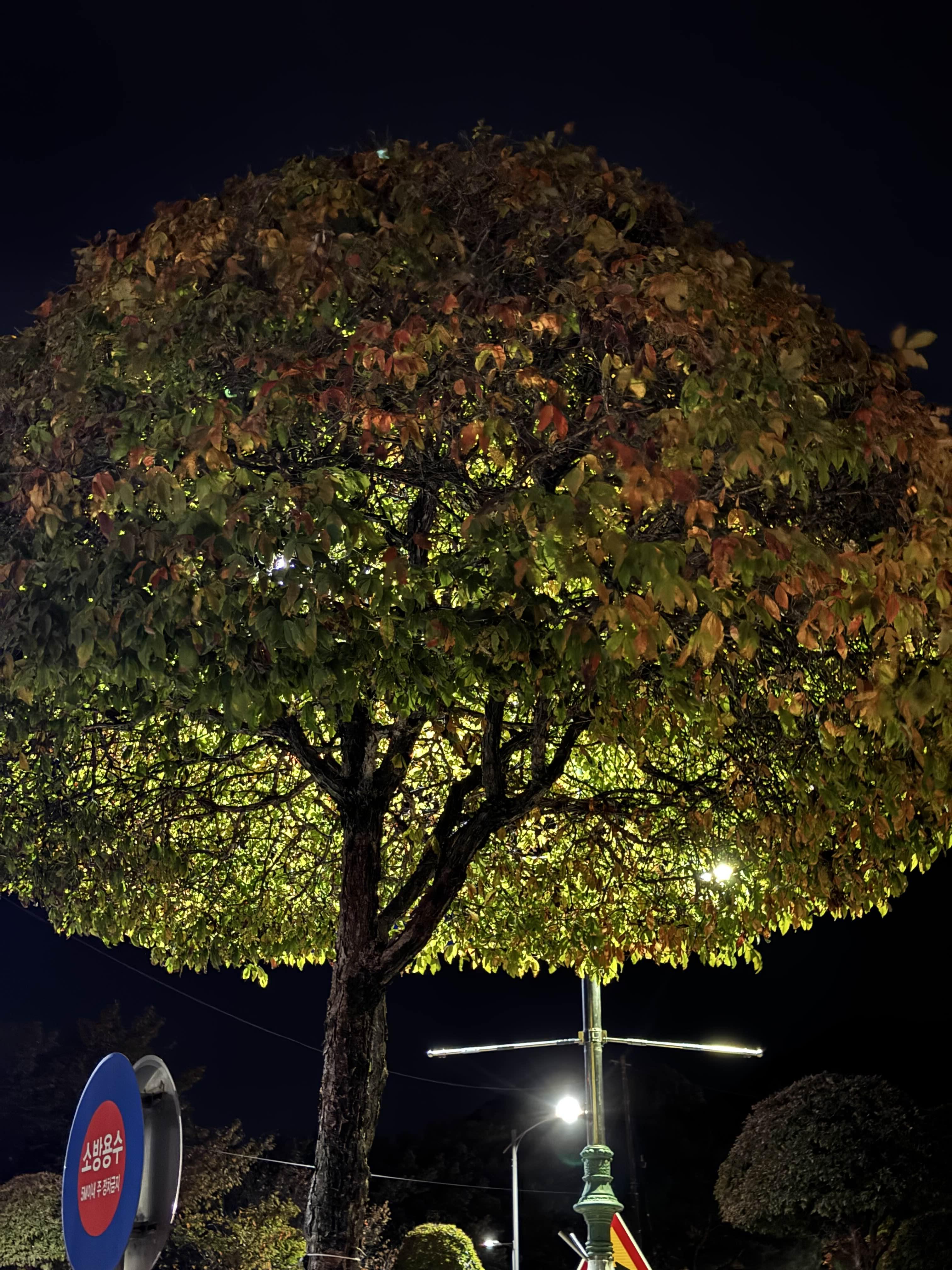 솎음 전지도 신경을 많이 써서, 야간에 가로등 불빛이 은은하게 투광되는 모습이 꽤나 인상적이었습니다.
