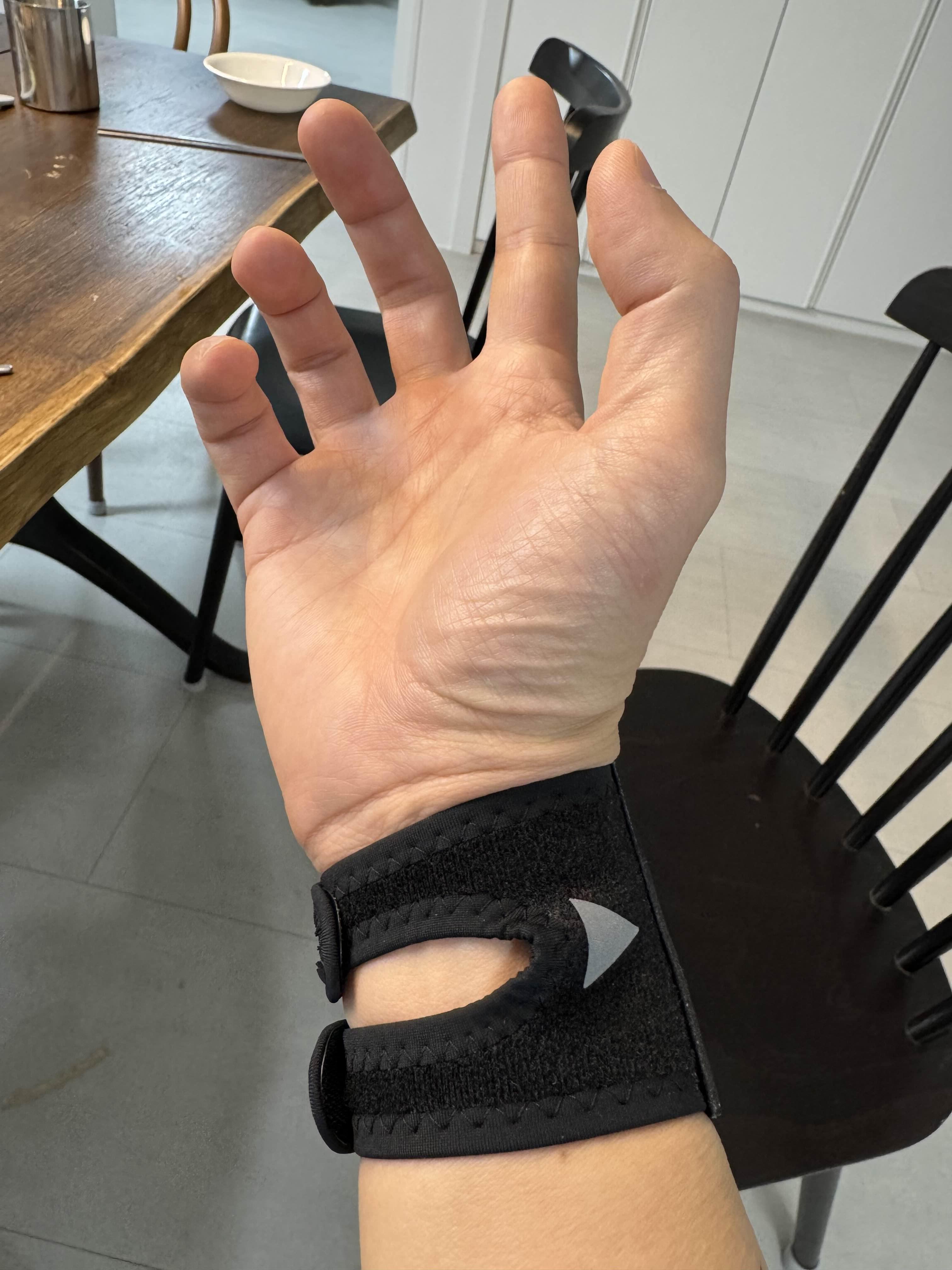 제가 가장 아파하던 손목 부분을 잡아주기 때문에 확실히 통증이 안느껴지네요. 젓가락질을 할 때 좀 불편해지기도 하는데 그만큼 손목을 못움직이게 고정시켜준다고 봐야겠죠.
