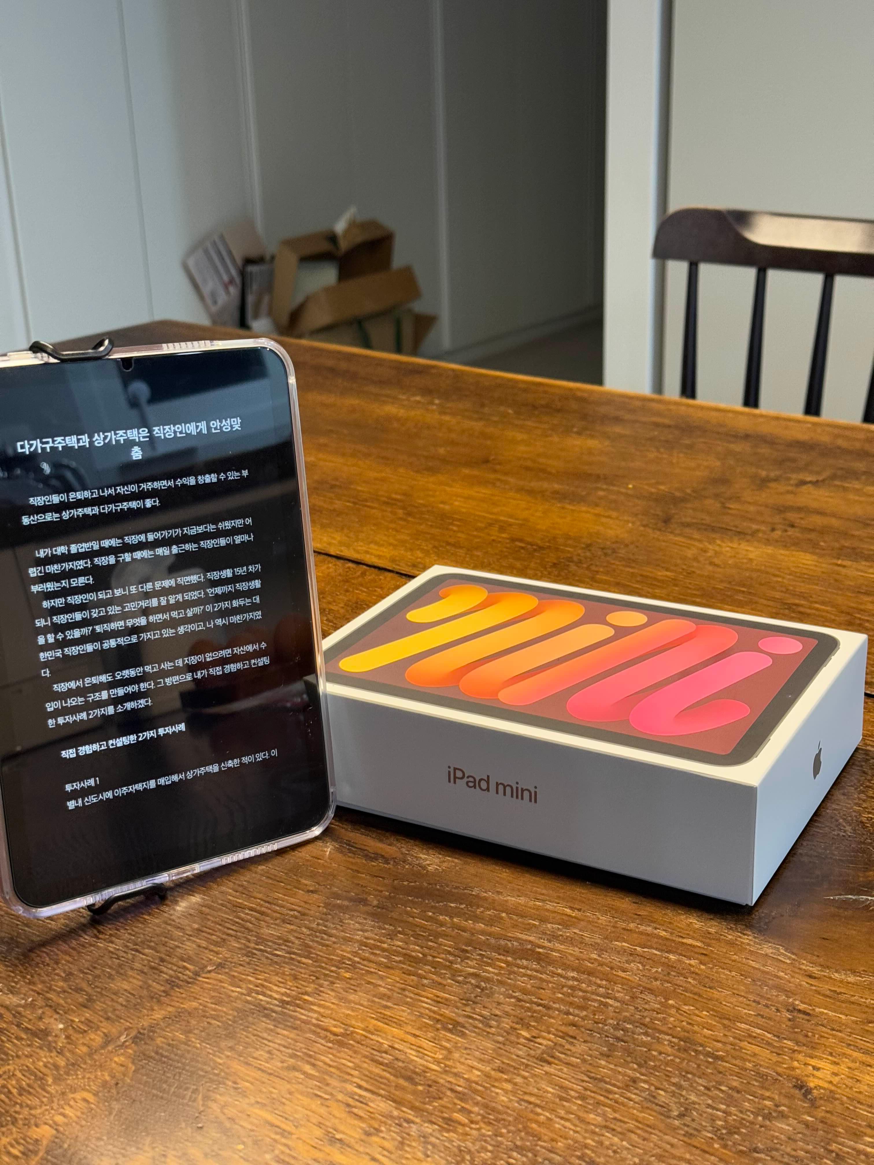 요새 에어팟프로구입 등 이런 저런 지출이 많아서 구매를 망설이다가 와이프가 그만 고민하고 제발 좀 사라고 거의 강매하다시피 권유하여 구입하게 된 아이패드 미니7세대입니다.