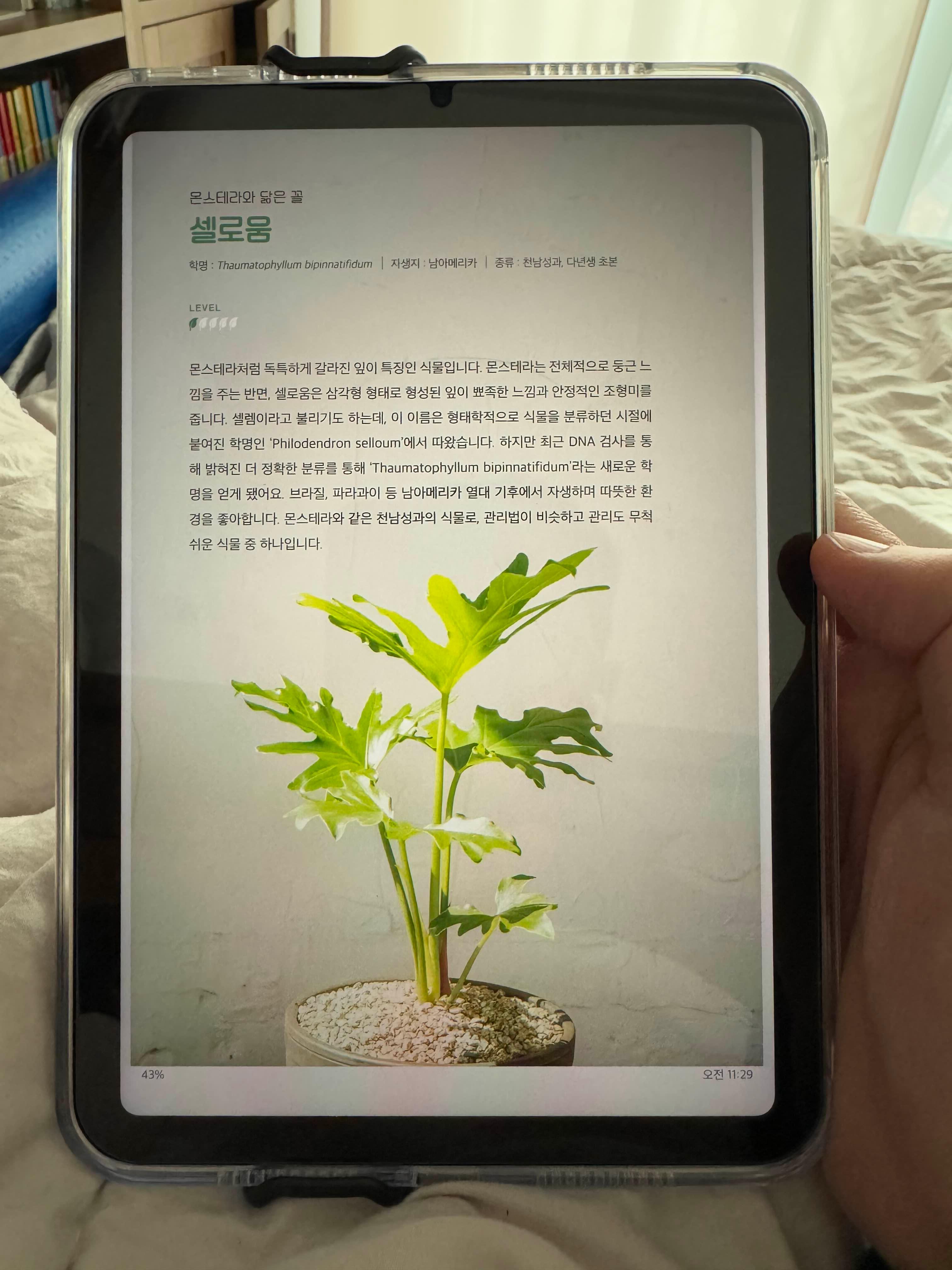 책을 불러오는 속도가 빠르고, 핀치투줌이 매우 신속해서 만족스럽네요. 다만, 이북리더보단 무게가 있어 손목이 약간 부담스럽긴 합니다. 단점은 요거 하나. ㅎㅎ