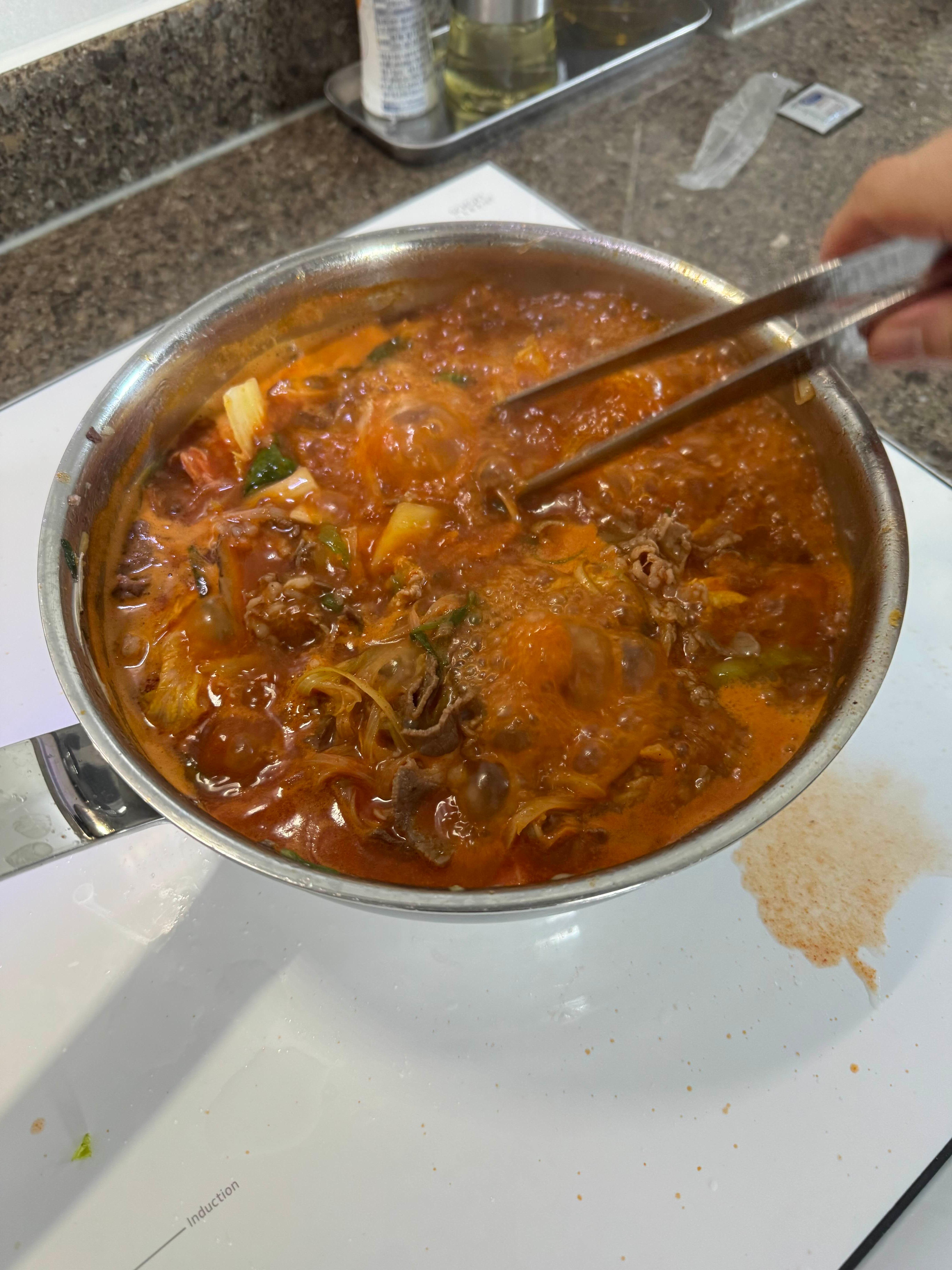 밀키트로 유명하다는 송쉐프 고기짬뽕을 처제가 한팩 가져와 먹어보았습니다. 전날 가리비와 소주로 지친 속을 달래봅니다.