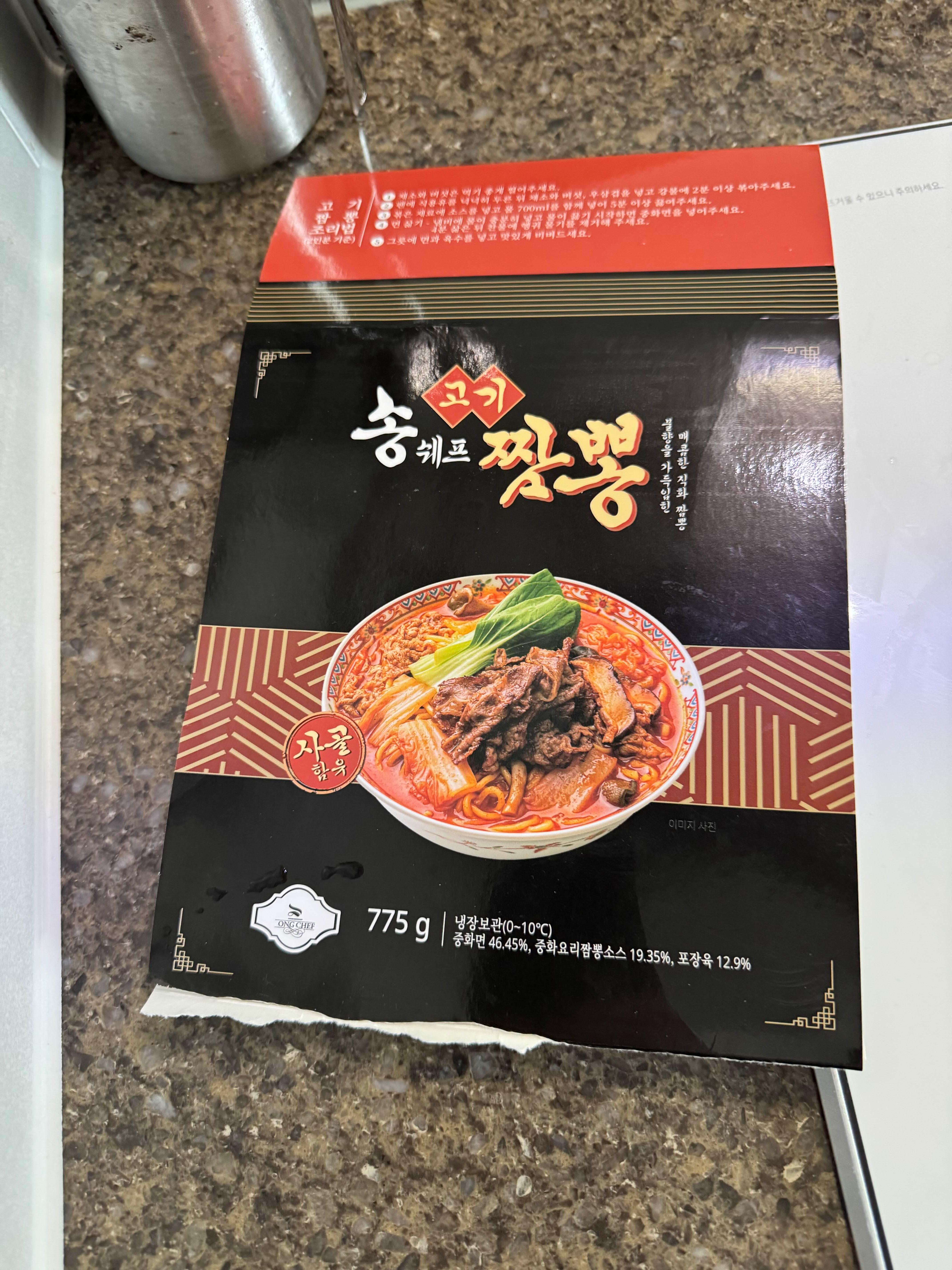 2인분 기본으로 들어있는데 고기의 진한맛이 인상적입니다. 고기를 추가해서 더 넣긴 했지만 진한 국물에 그렇게 자극적이지도 않고 딱 좋았습니다. 왠만한 짬뽕집보단 나은 것 같네요. 제가 고기짬뽕을 좋아해서 그런 건지도 모르지만요. ㅎㅎ