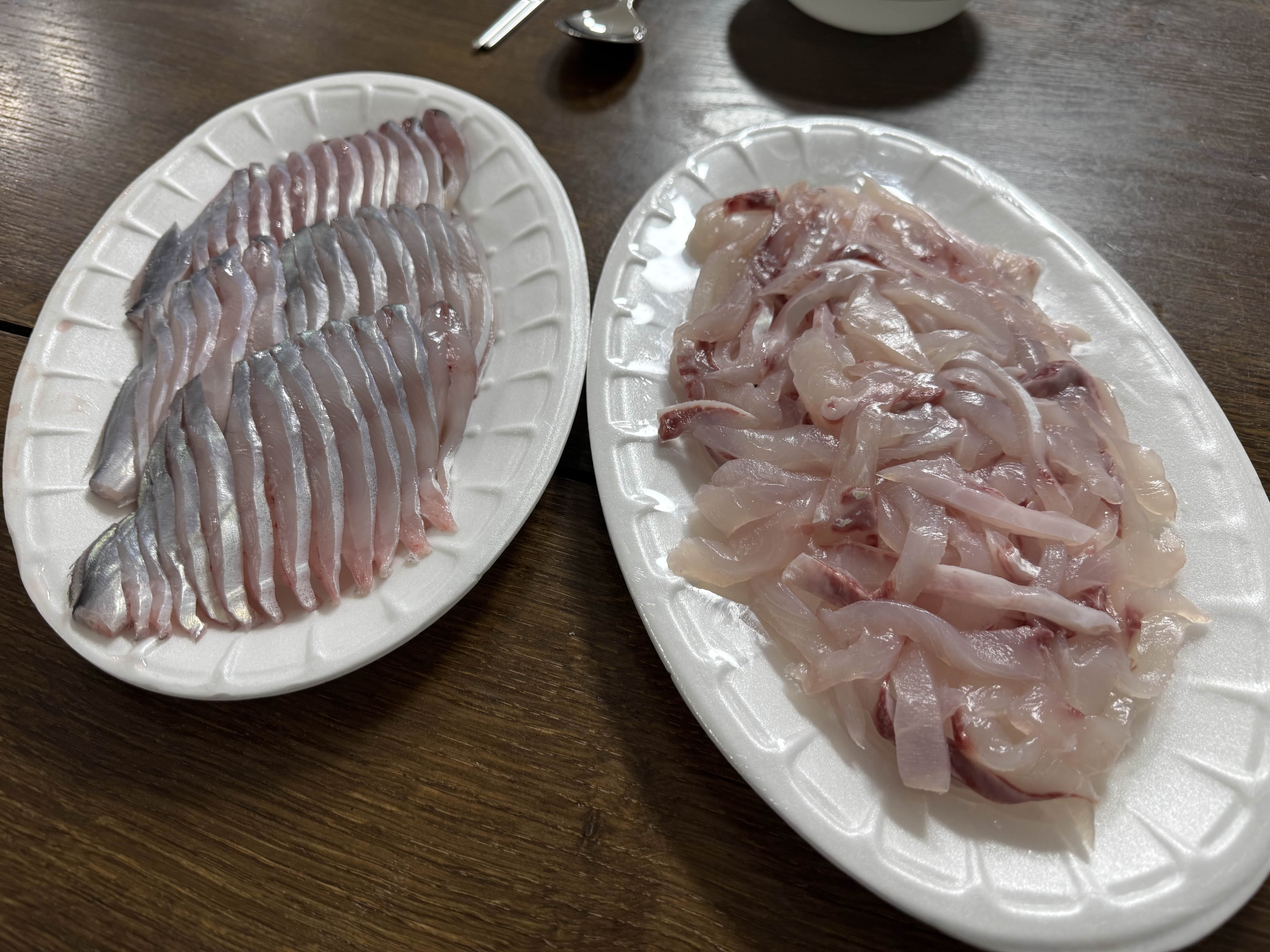숭어는 종종 흙내가 난다는 인식이 있지만, 이번에 맛본 숭어회는 전혀 흙내가 없고 고소하며 적절하게 숙성되어 마지막 한 점까지 맛있게 즐길 수 있었습니다.