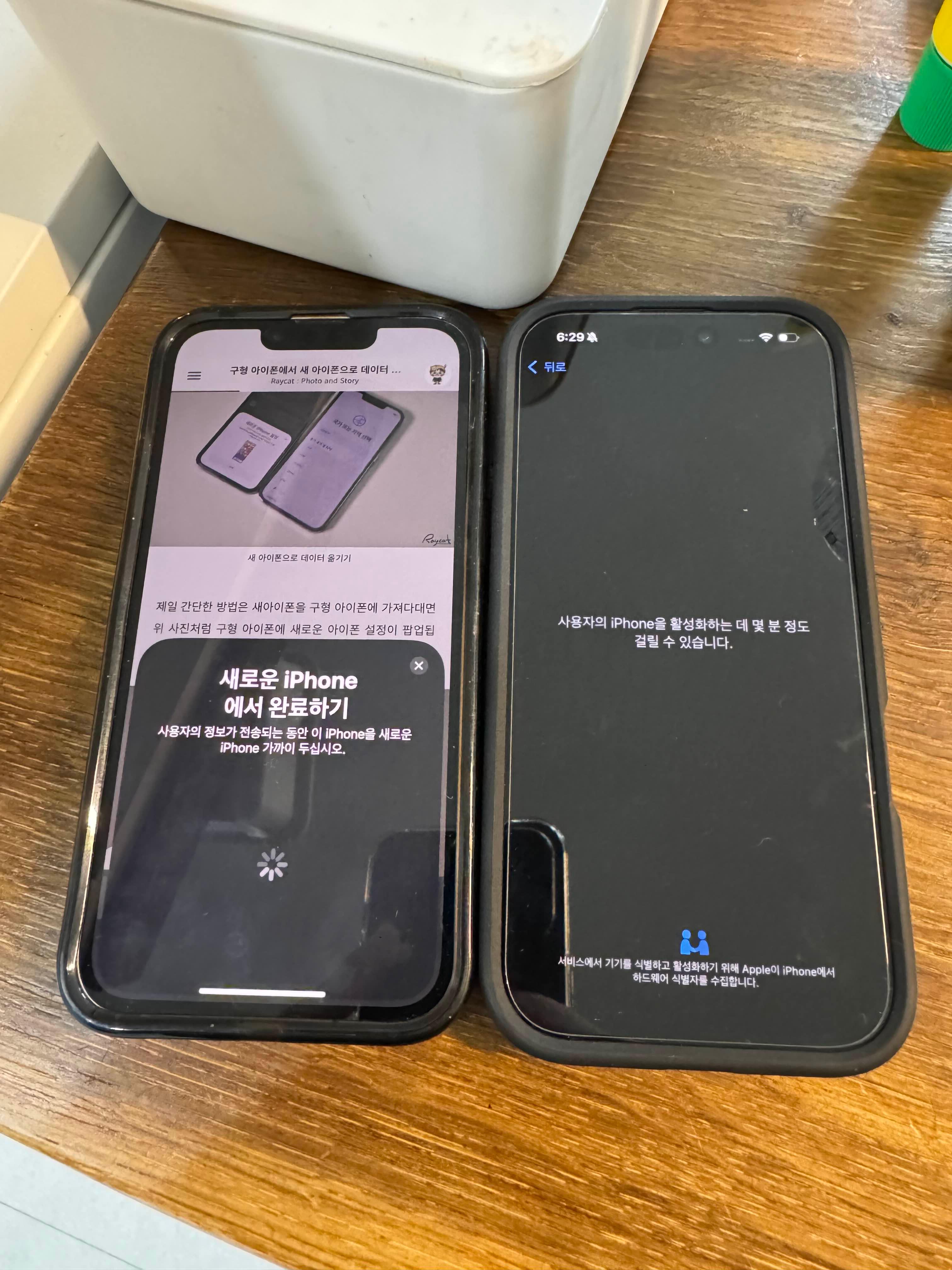 - 새 아이폰을 열어보고 기존 아이폰 옆에 두기! (Wi-Fi & Bluetooth 활성화 필요)