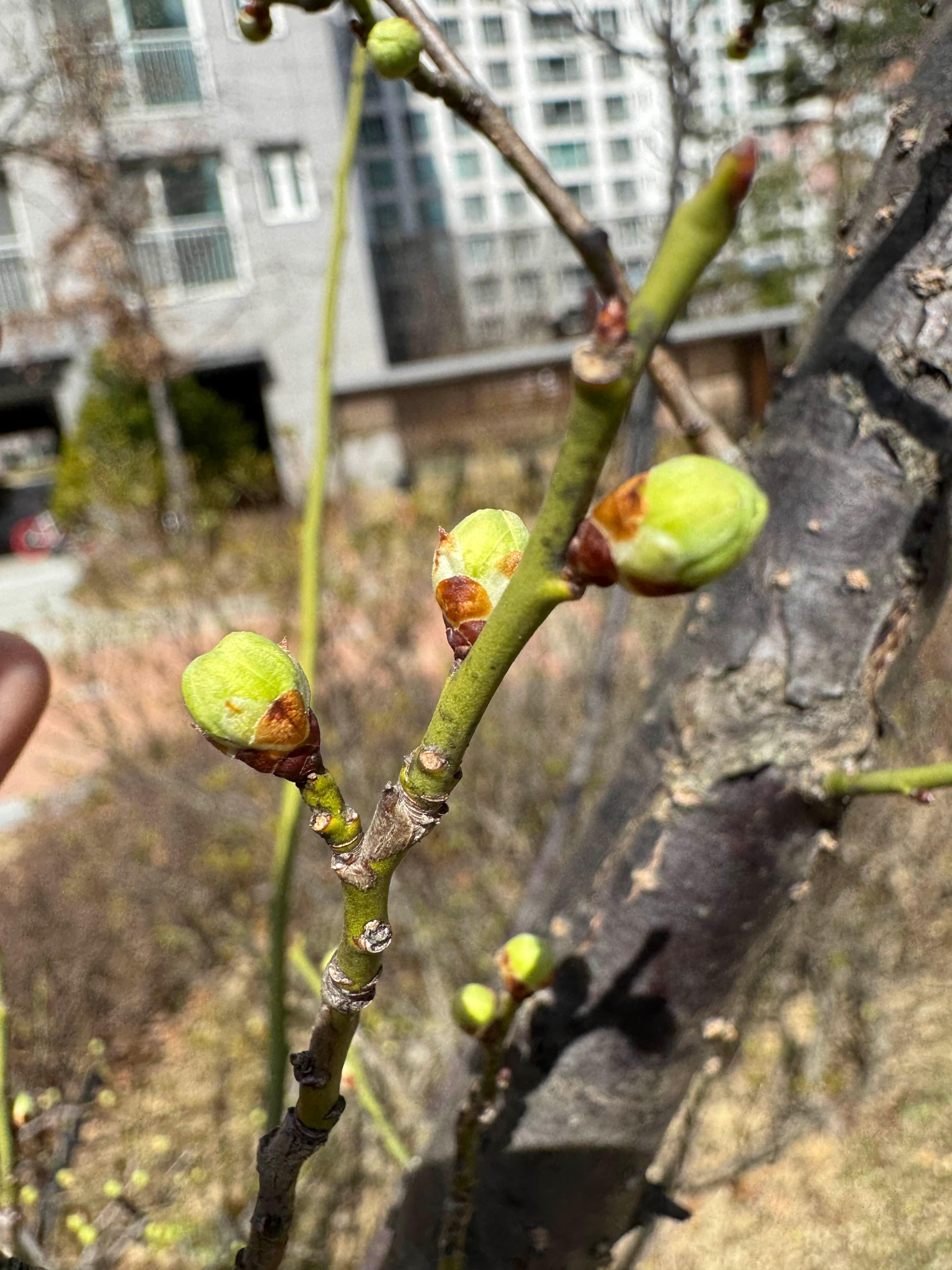 아직 매화🌸는 개화하지 않았지만, 마치 언제라도 피어날 것처럼 움츠리고 있어 곧 활짝 필 순간이 기다려집니다.