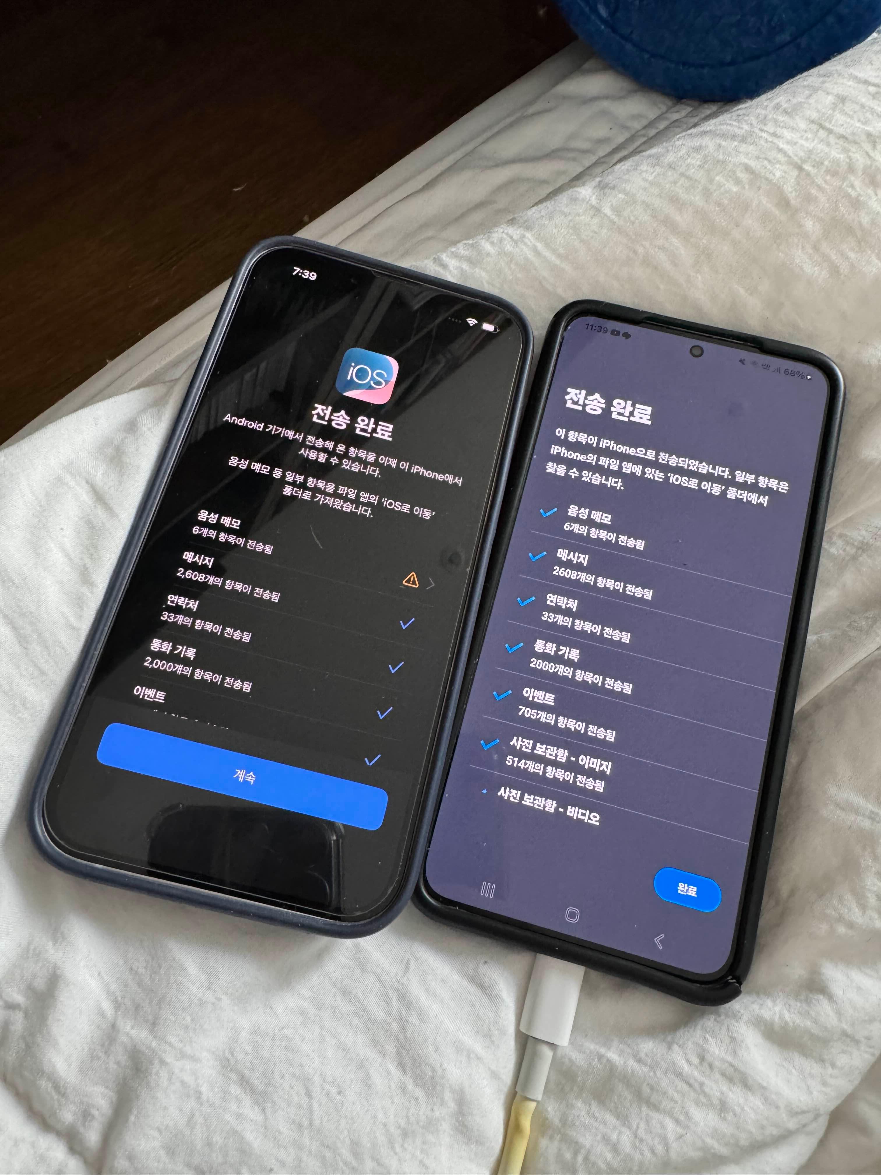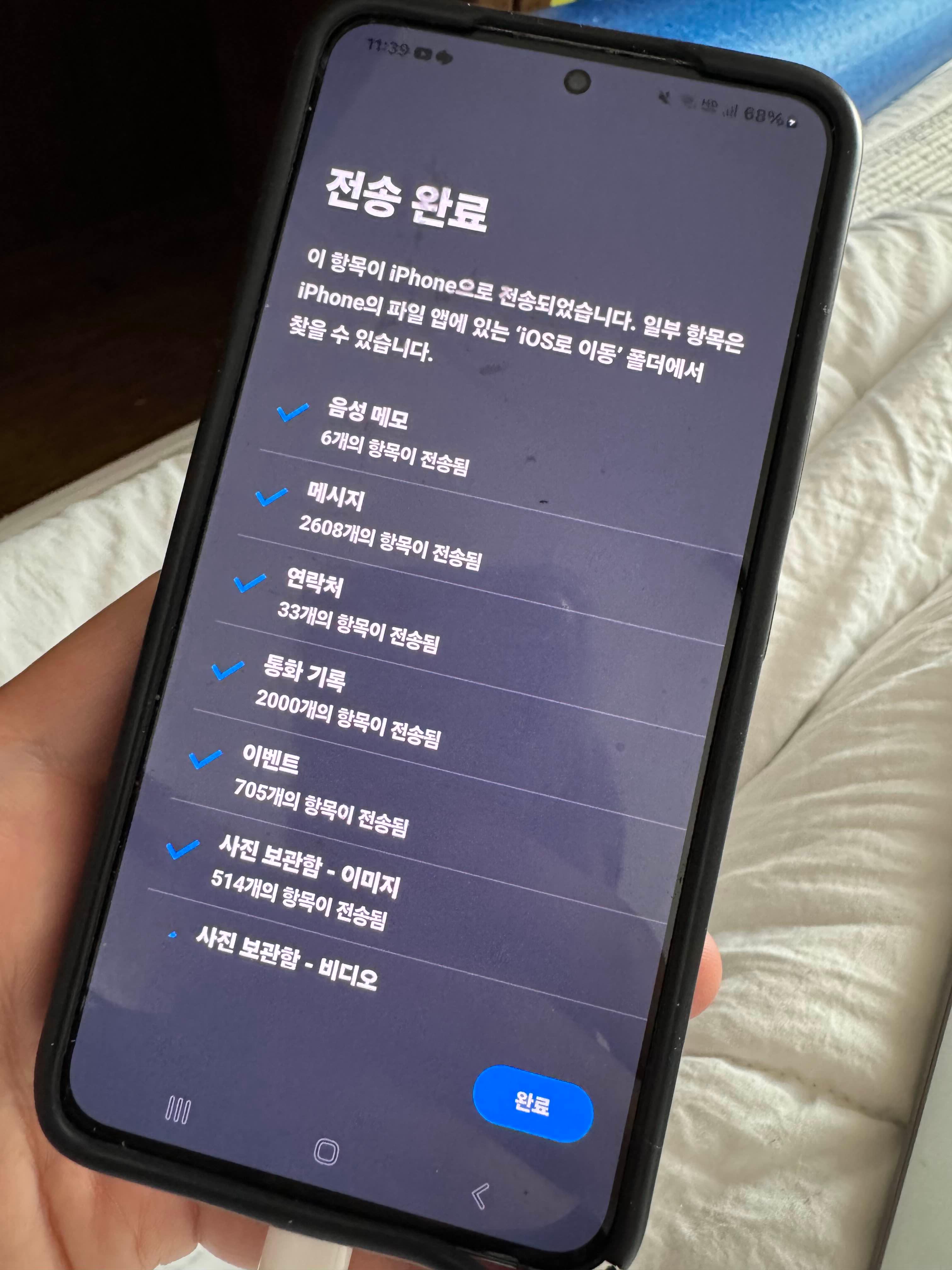 - 전송 완료 후 아이폰에서 나머지 설정 완료