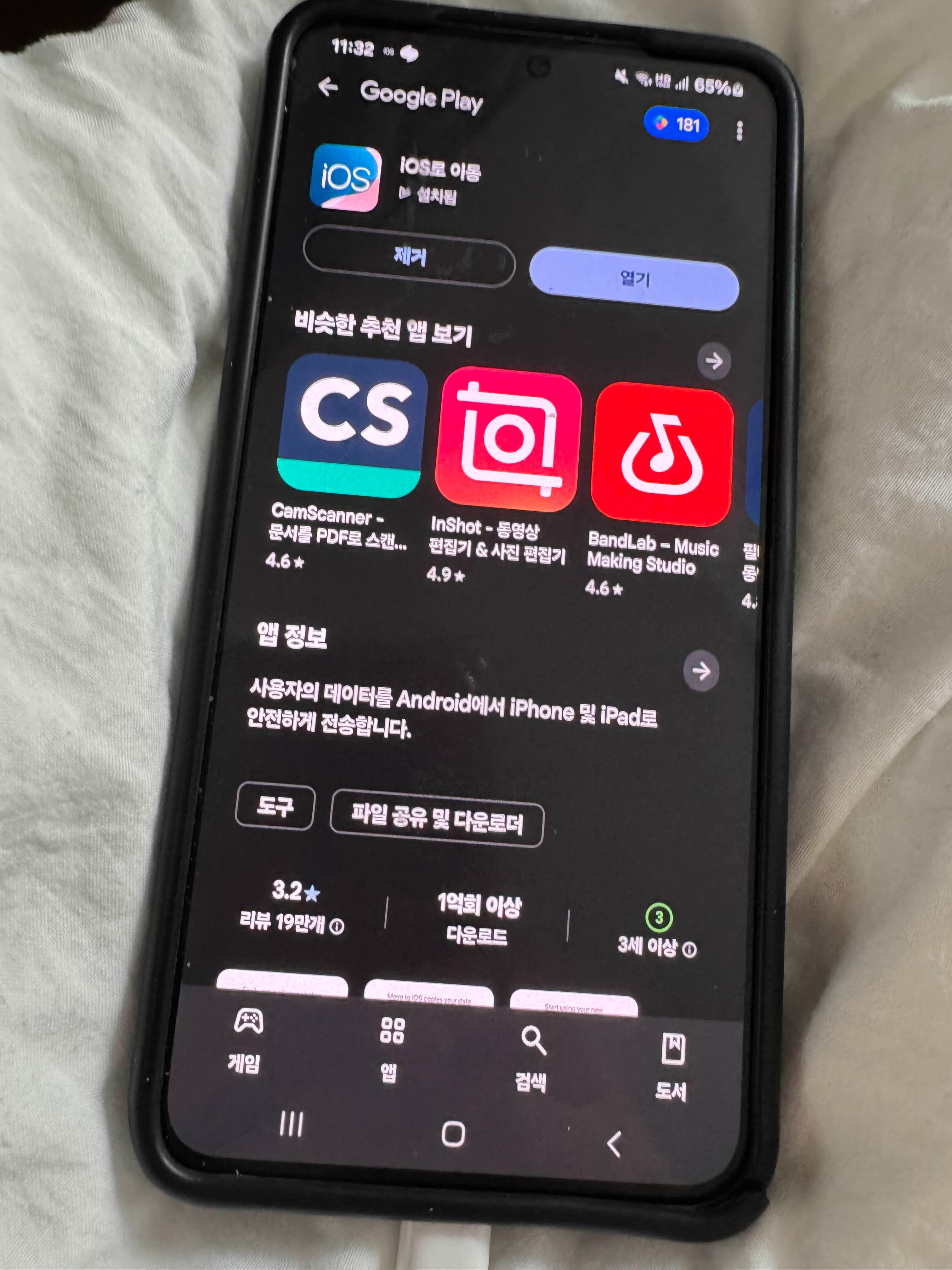 ✅ 'iOS로 이동' 앱 설치 (갤럭시 플레이스토어에서 무료)