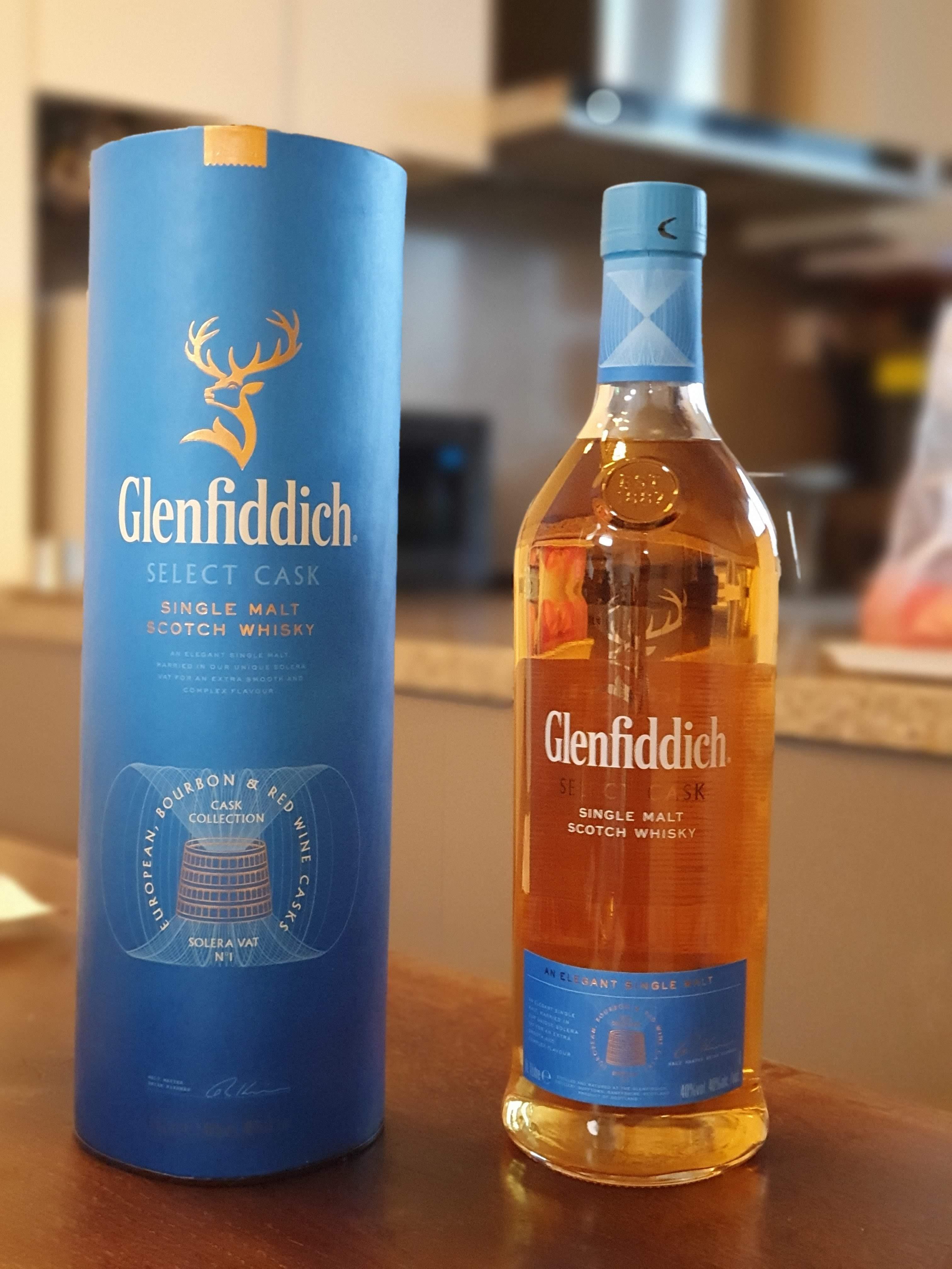 글렌피딕 셀렉트 캐스크(Glenfiddich SELECT CASK)는 향이 그보다 약하게 찌르지만 더 풍성하다. 풍미도 진한 편이고 입에 더 오래 머무르고 좀 더 쓴 맛이 강하다.