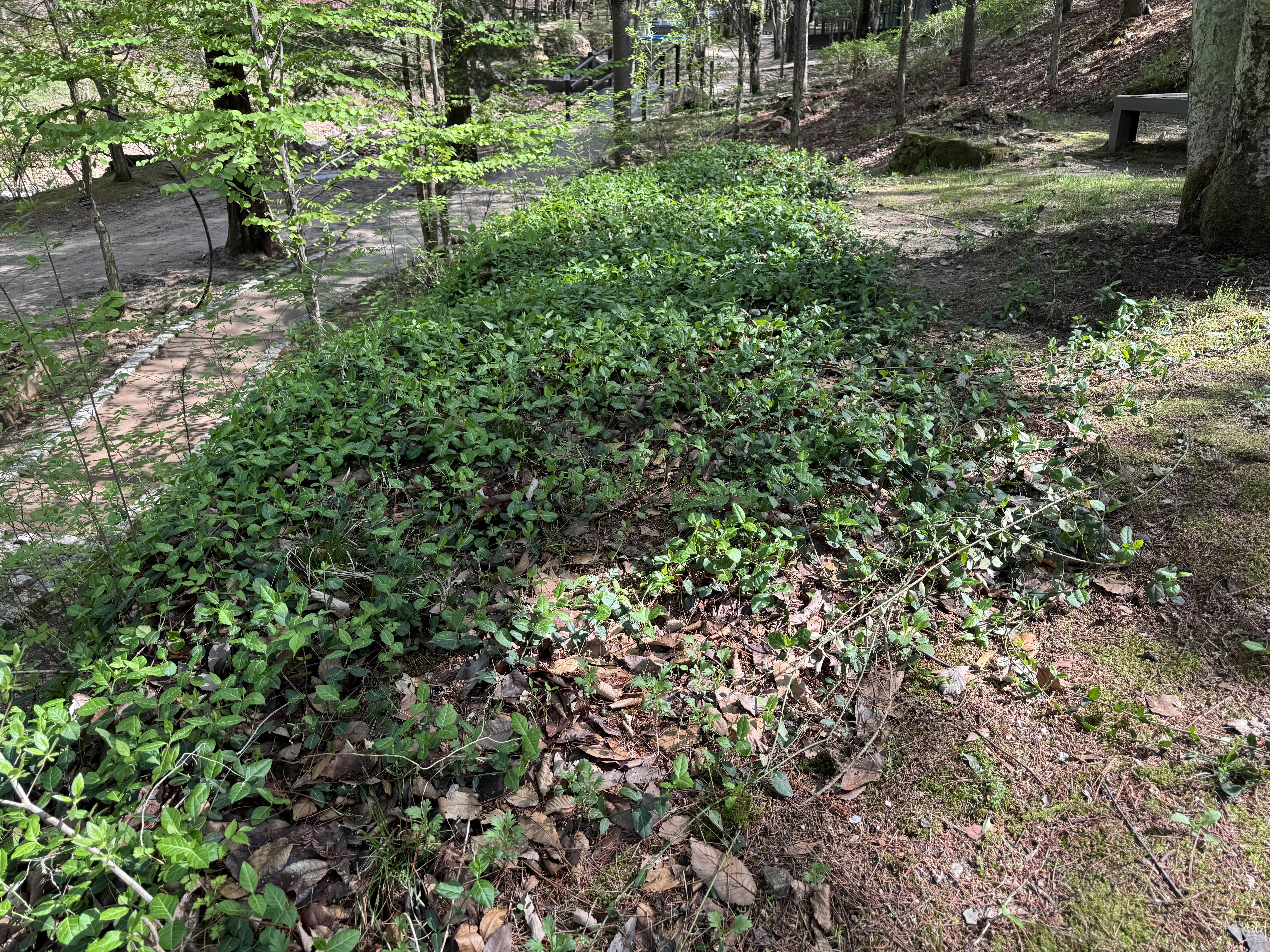 일반 사철나무와는 다르게 누운 모습으로 흙을 타고 퍼져 있는 이 식물은 정말 매력적이에요.