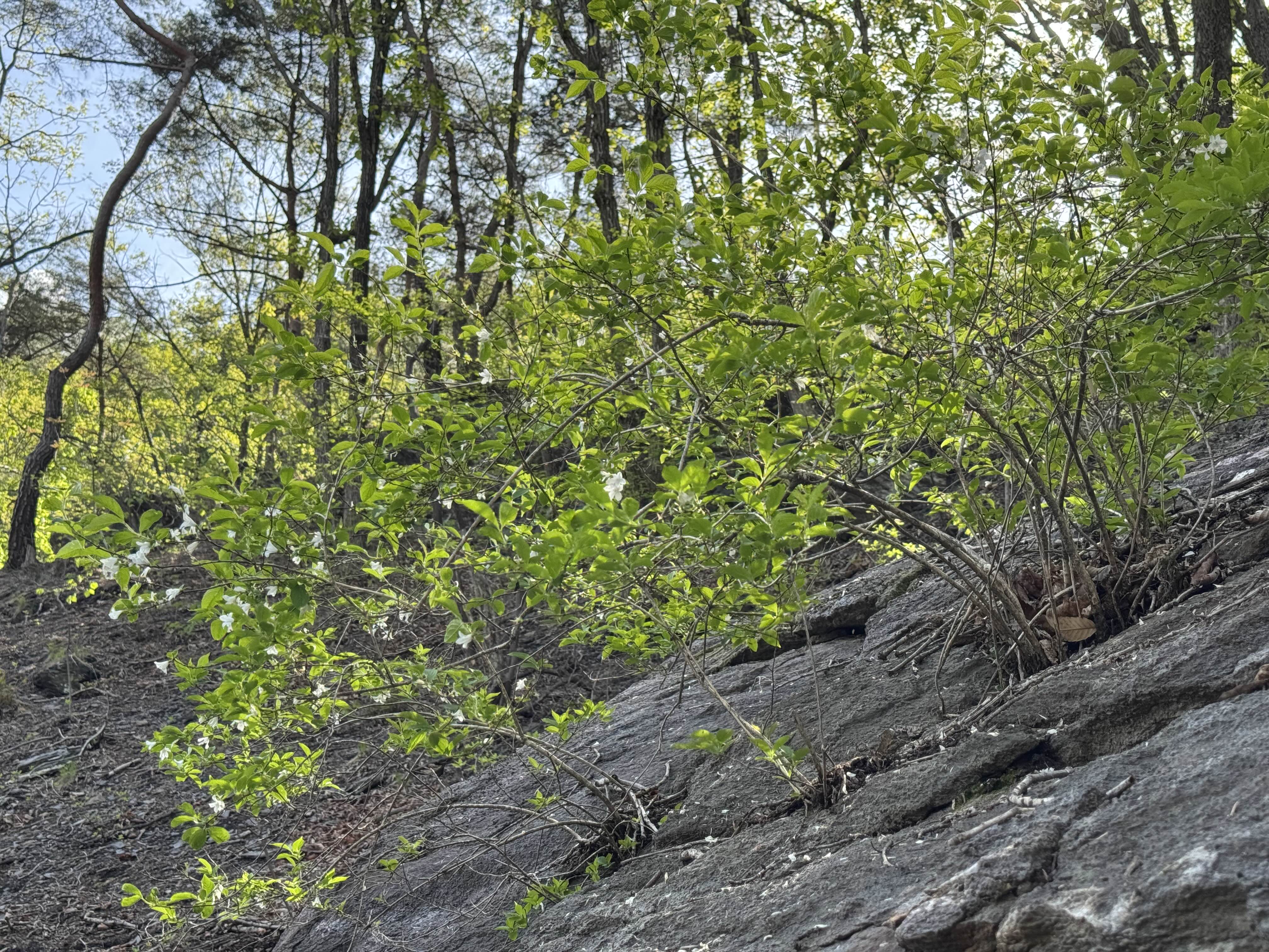 이번 등산에서 말발도리를 발견한 장소는 놀랍게도 바위 위였습니다! 🪨🌱
