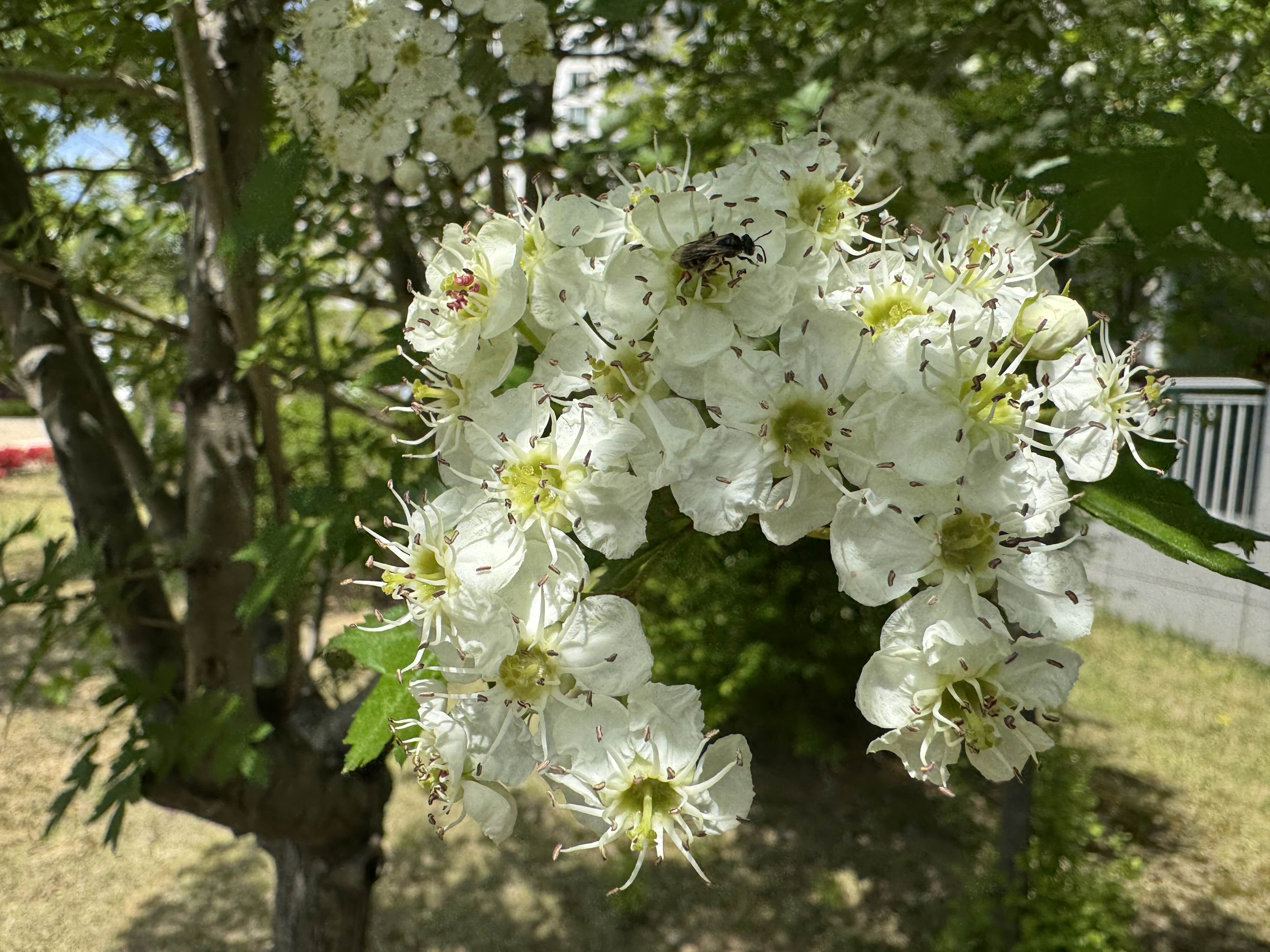- 꽃: 산사나무는 5월에 흰색 꽃을 피우며, 산방꽃차례로 모여 핍니다. 꽃잎은 5장이며, 수술은 20개, 암술대는 3~5개로 구성되어 있습니다. 이러한 꽃 구조는 장미과의 다른 꽃들과 유사한 특징을 보입니다.