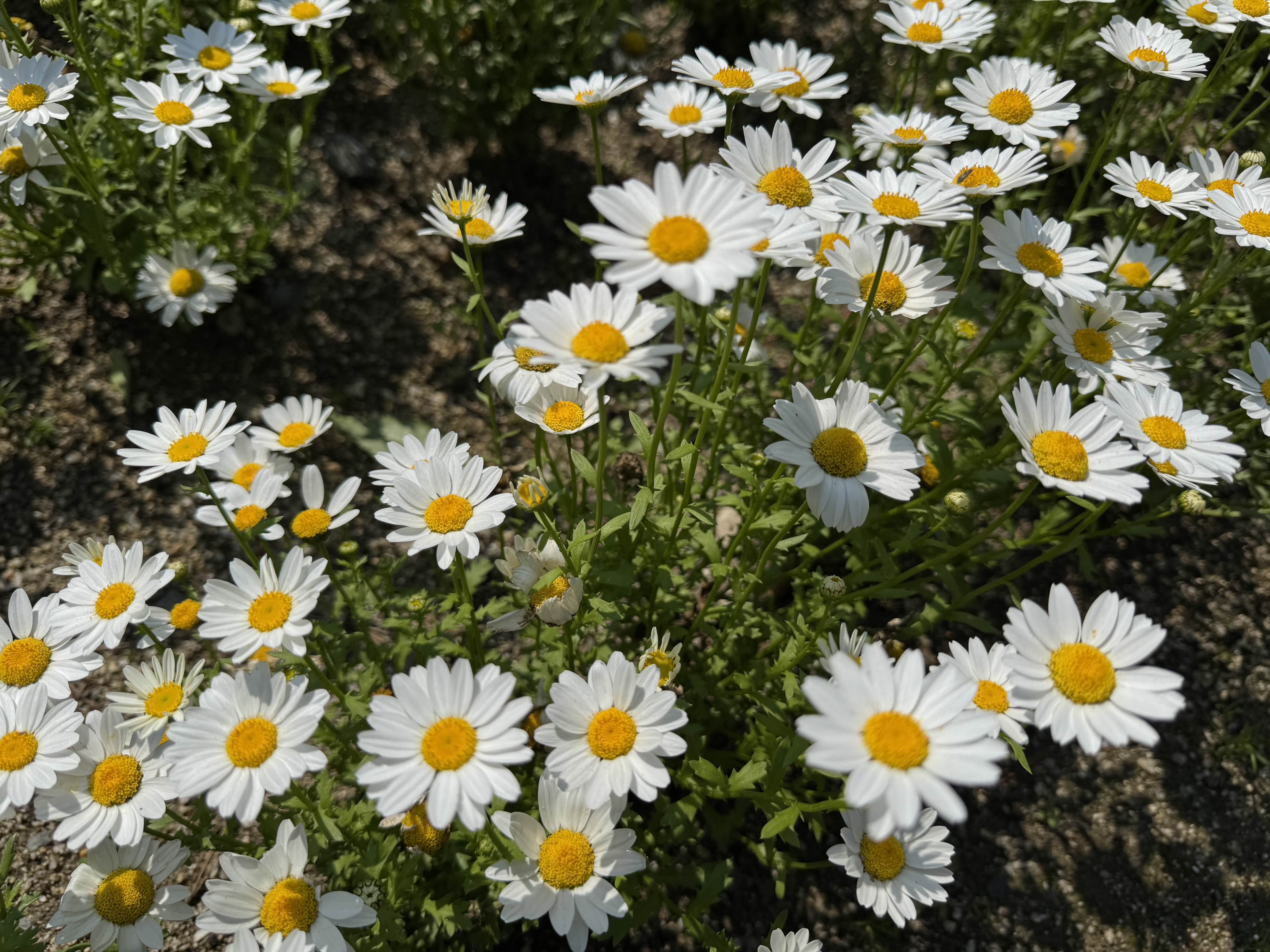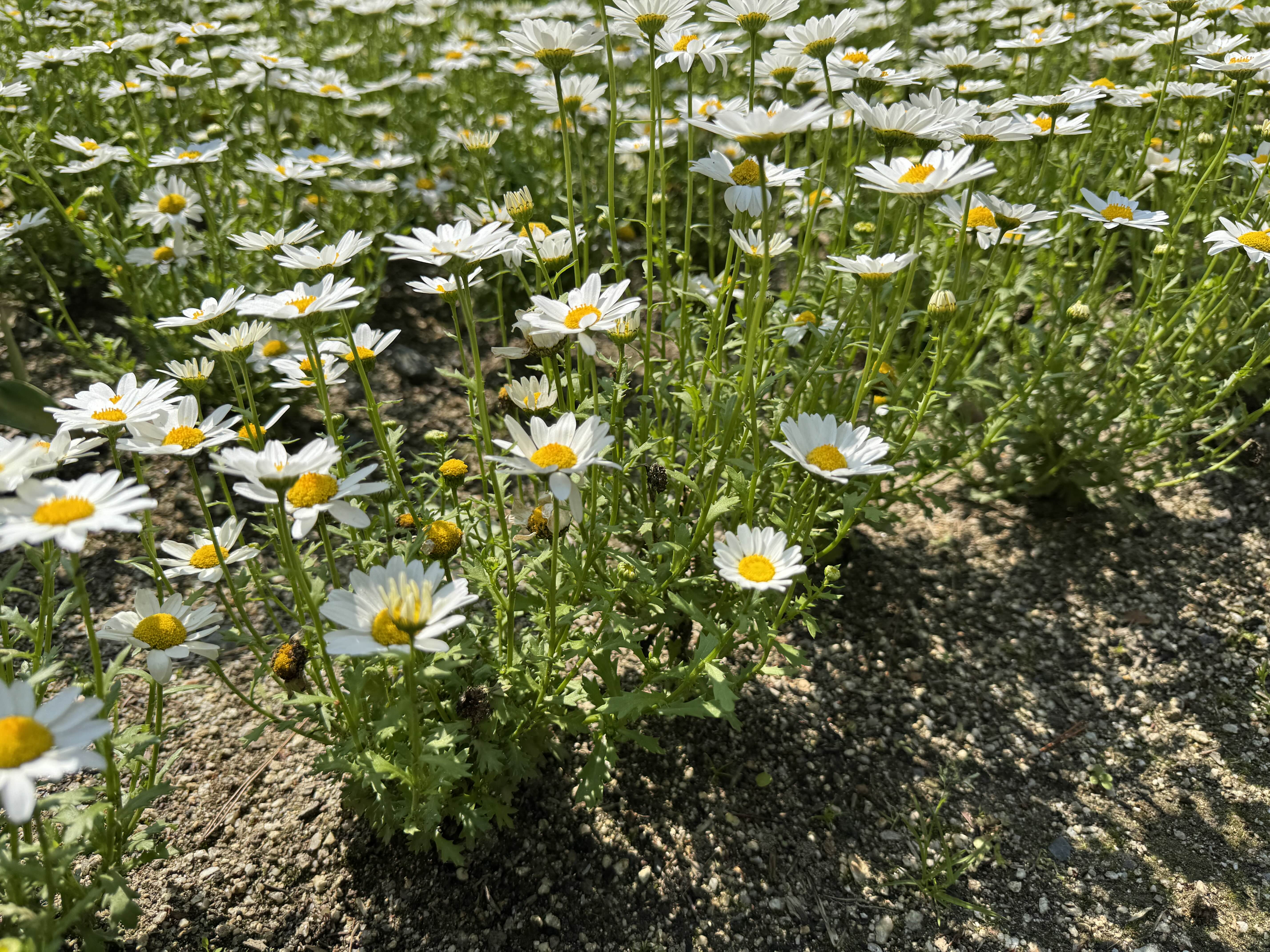 마가렛은 키가 아주 크진 않지만, 일정한 높이로 나란히 피어나는 것이 특징이에요.