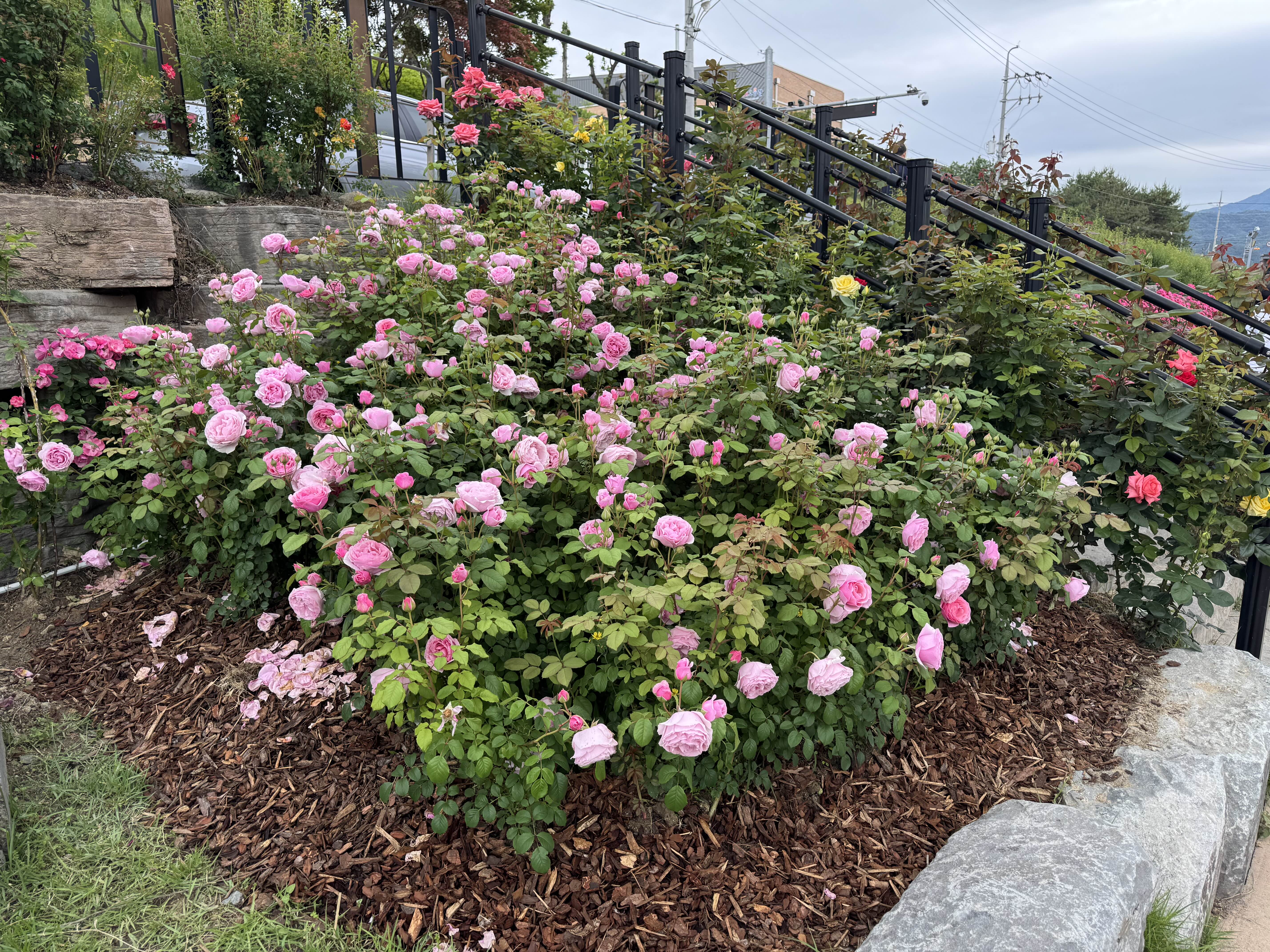 분홍색 장미 꽃밭.