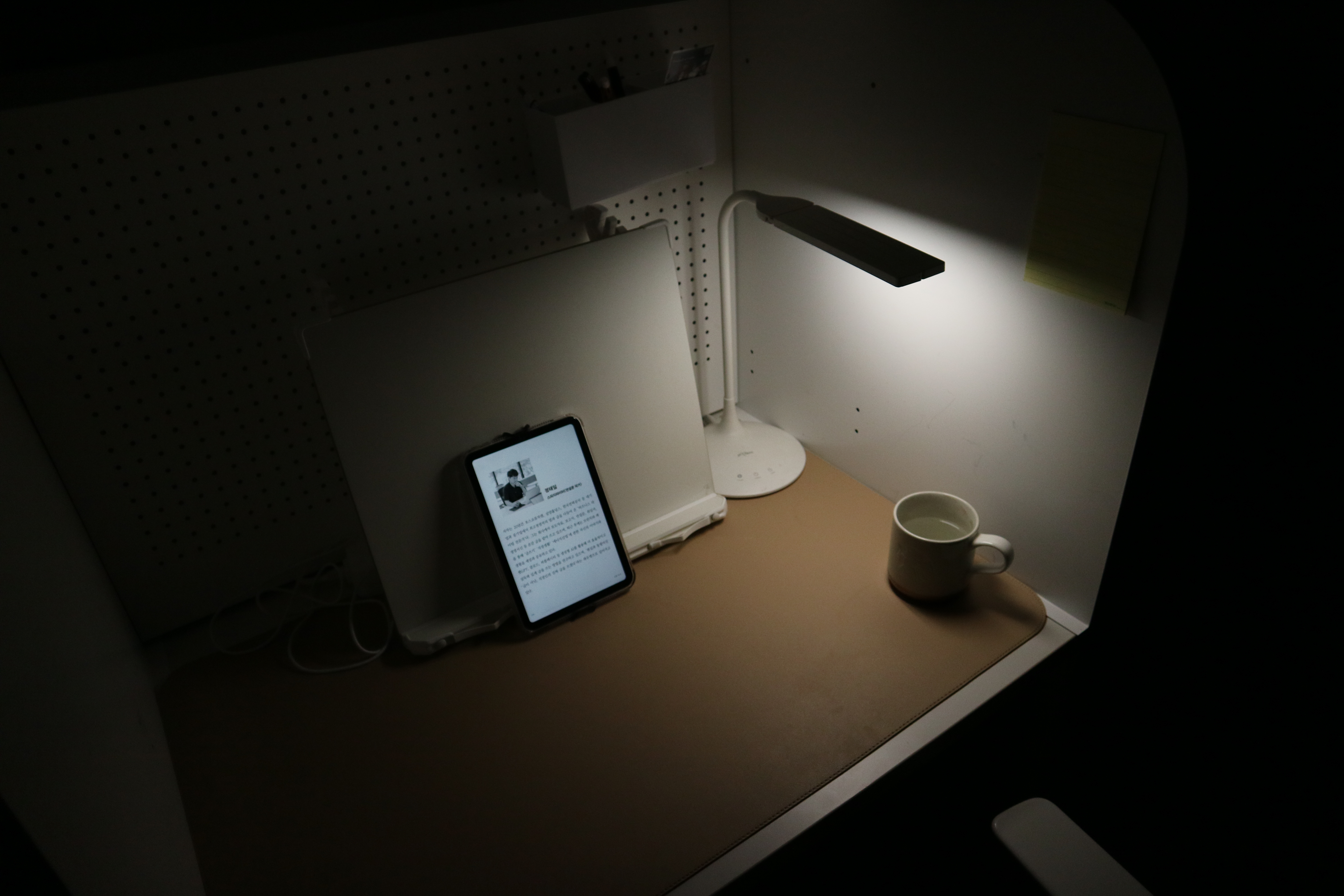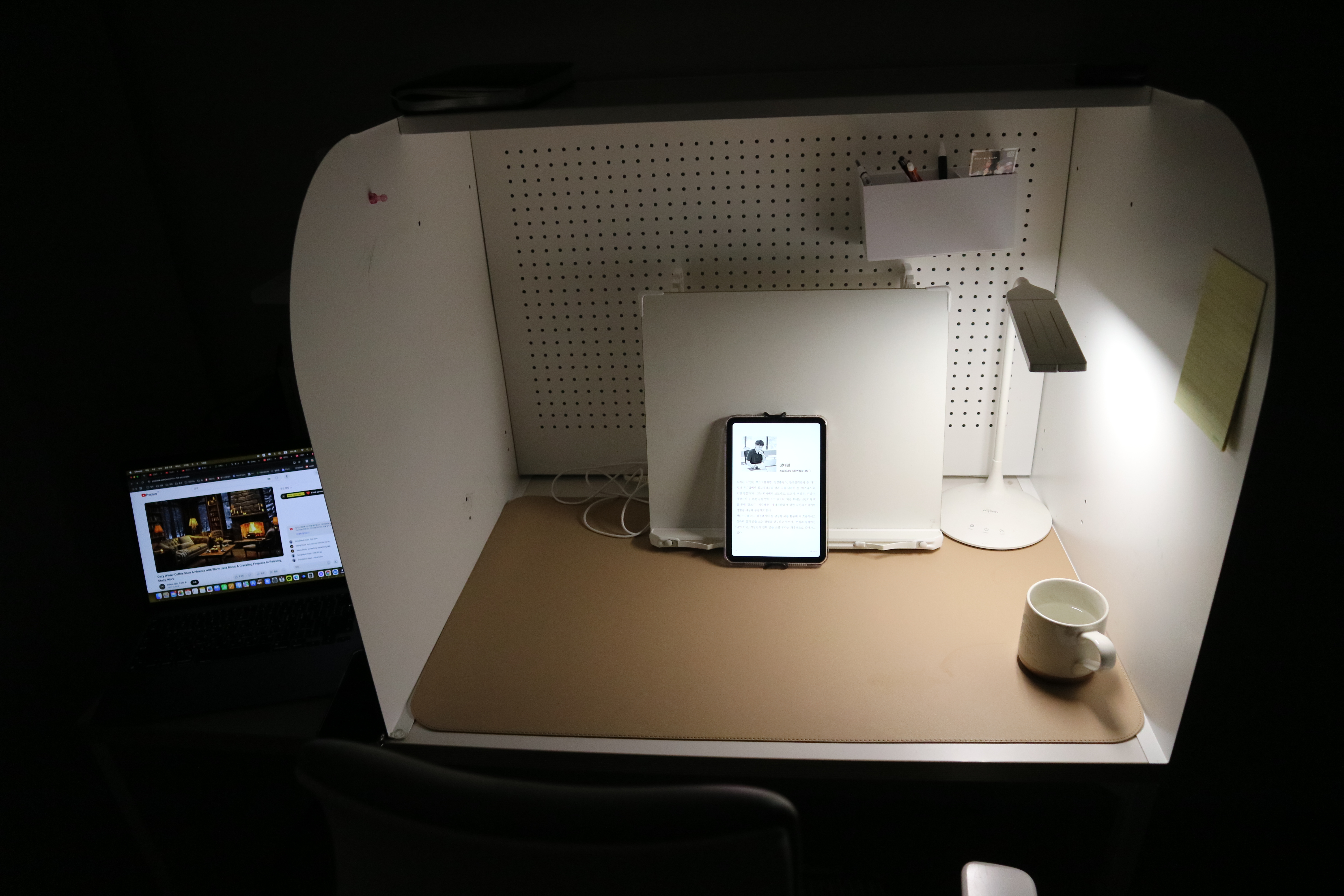 저는 오늘 방에서 책상 위에 칸막이를 치고, 스탠드 하나만 켜놓은 채 오롯이 책에 집중하는 시간을 가졌습니다.