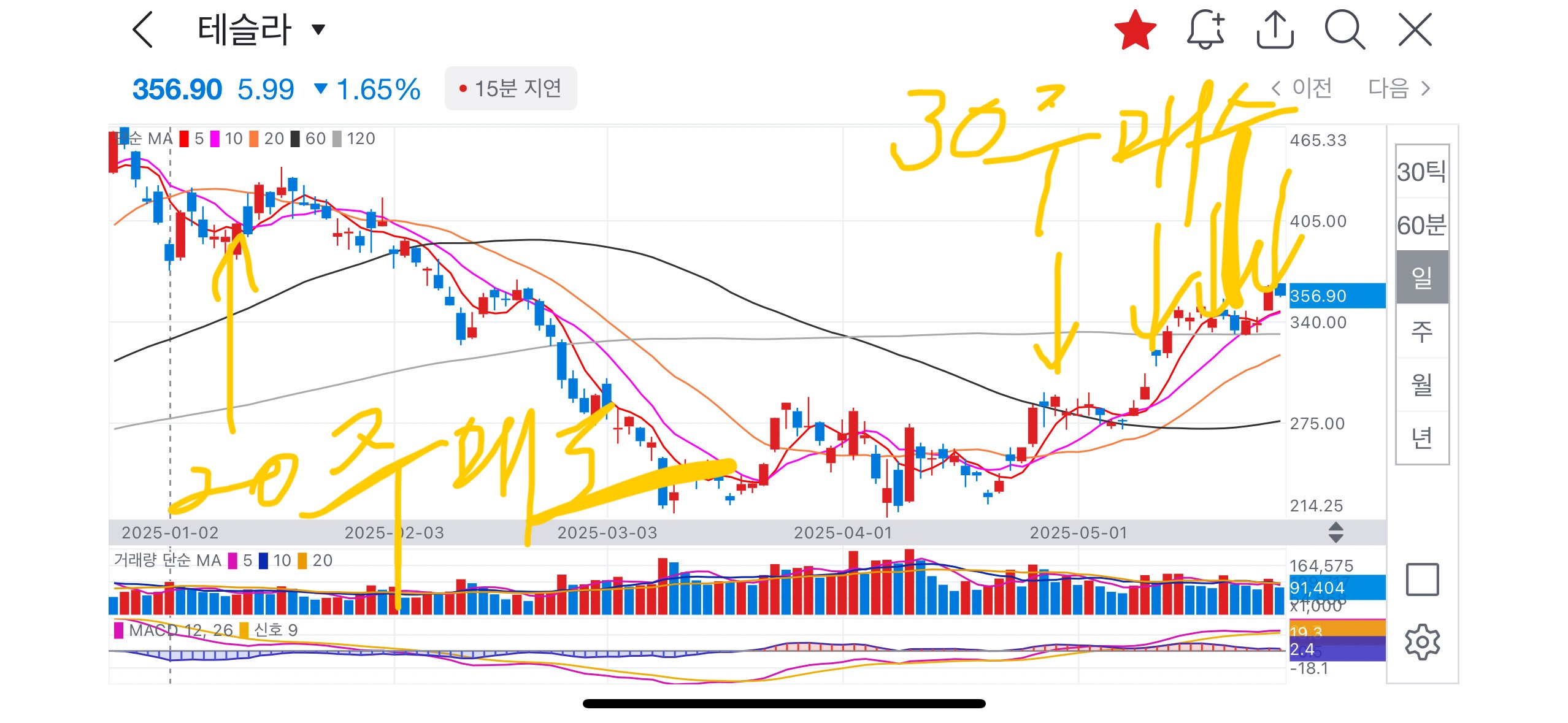 그리고 시간이 흘러 4월 29일부터 다시 테슬라 주식을 분할매수하기 시작했습니다.