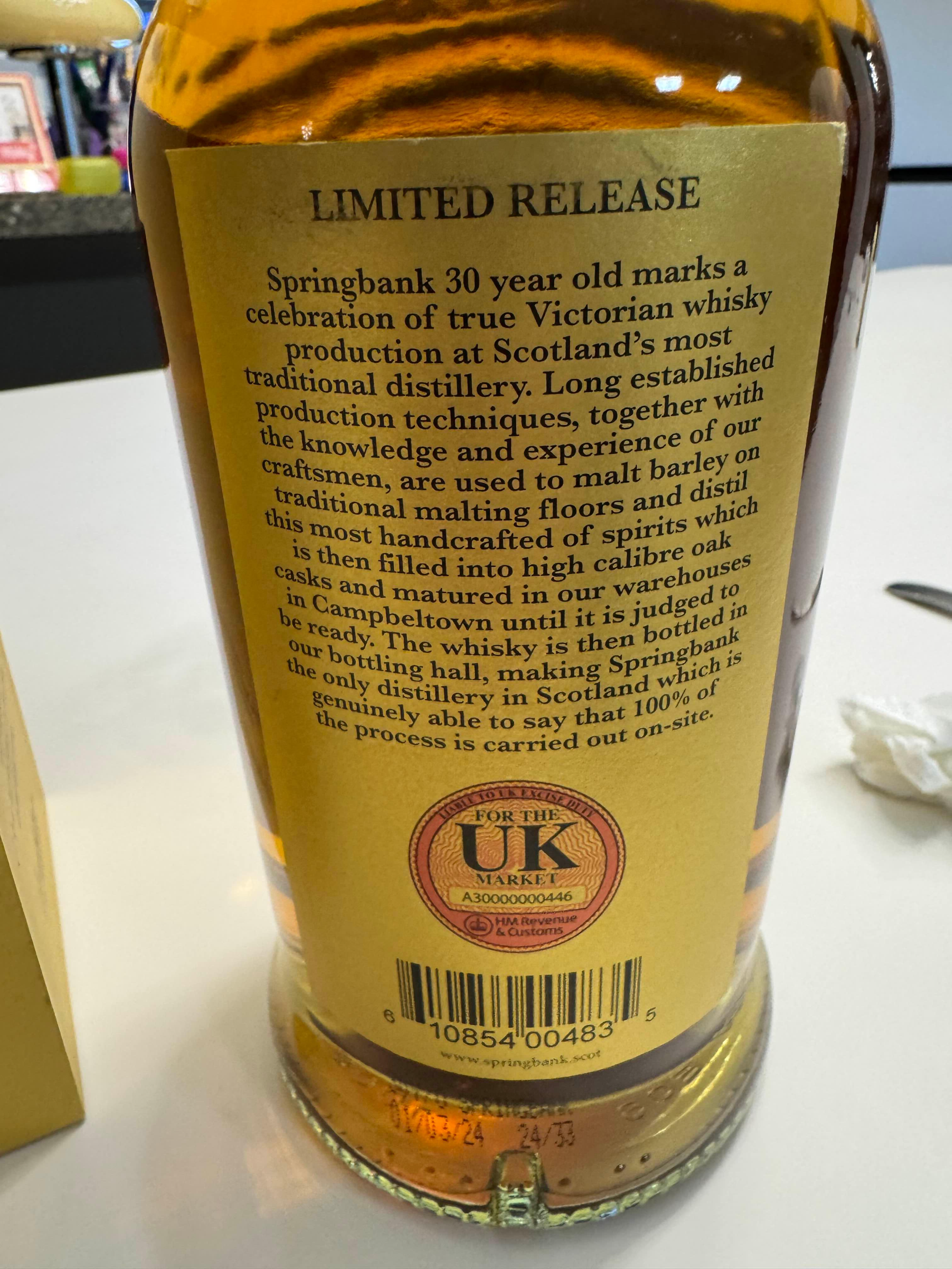 | 제품명 | 스프링뱅크 30년산 (Springbank 30 Years Old) |