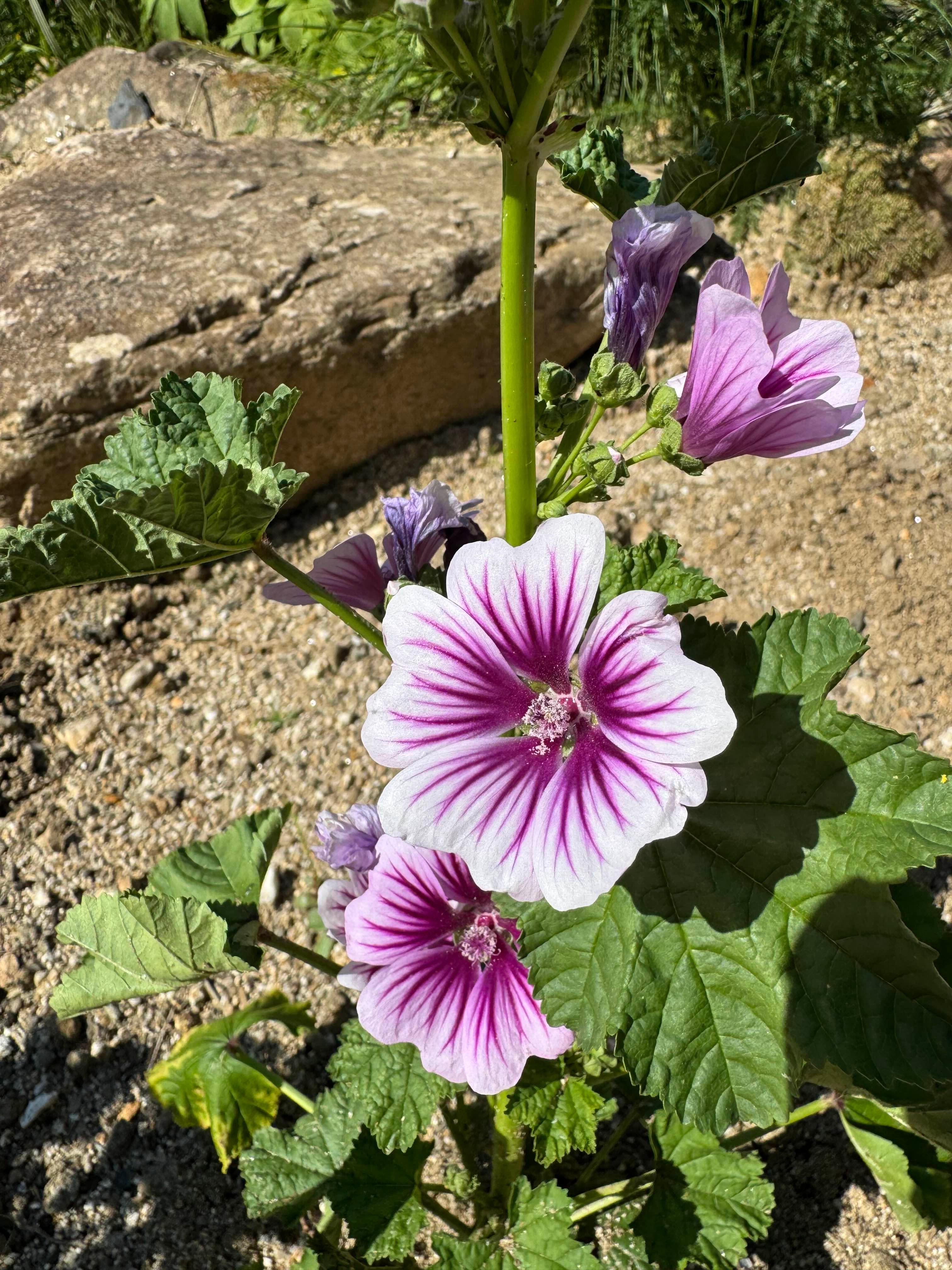 당아욱의 꽃은 자줏빛으로 훨씬 크고 색이 엄청나게 선명하네요.