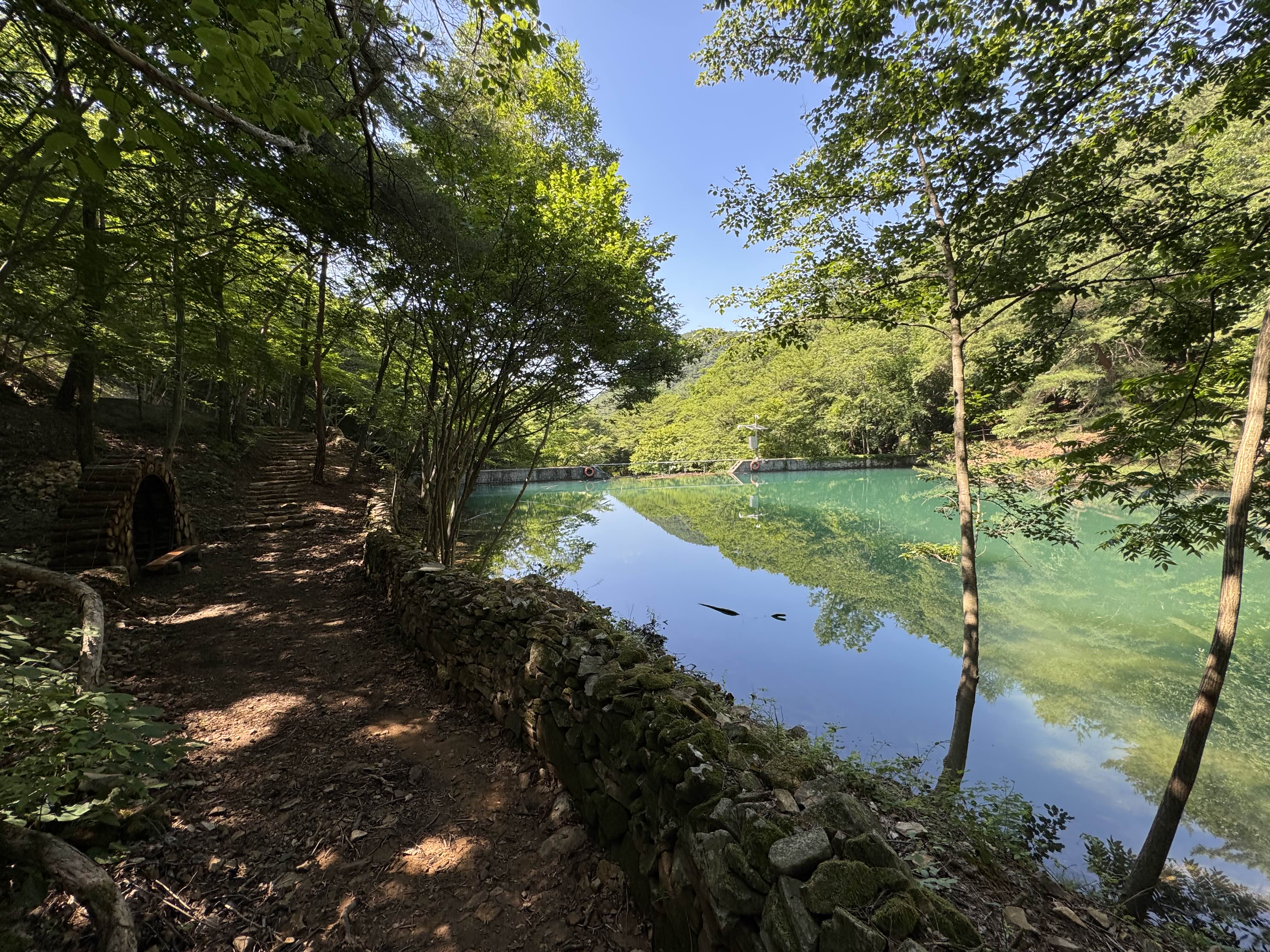 특히 위쪽 계곡에서 내려온 물이 고여 만들어진 사방댐은 비 온 뒤라 더욱 투명하고 깨끗한 모습을 보여주었습니다. 🌧️➡️🌞
