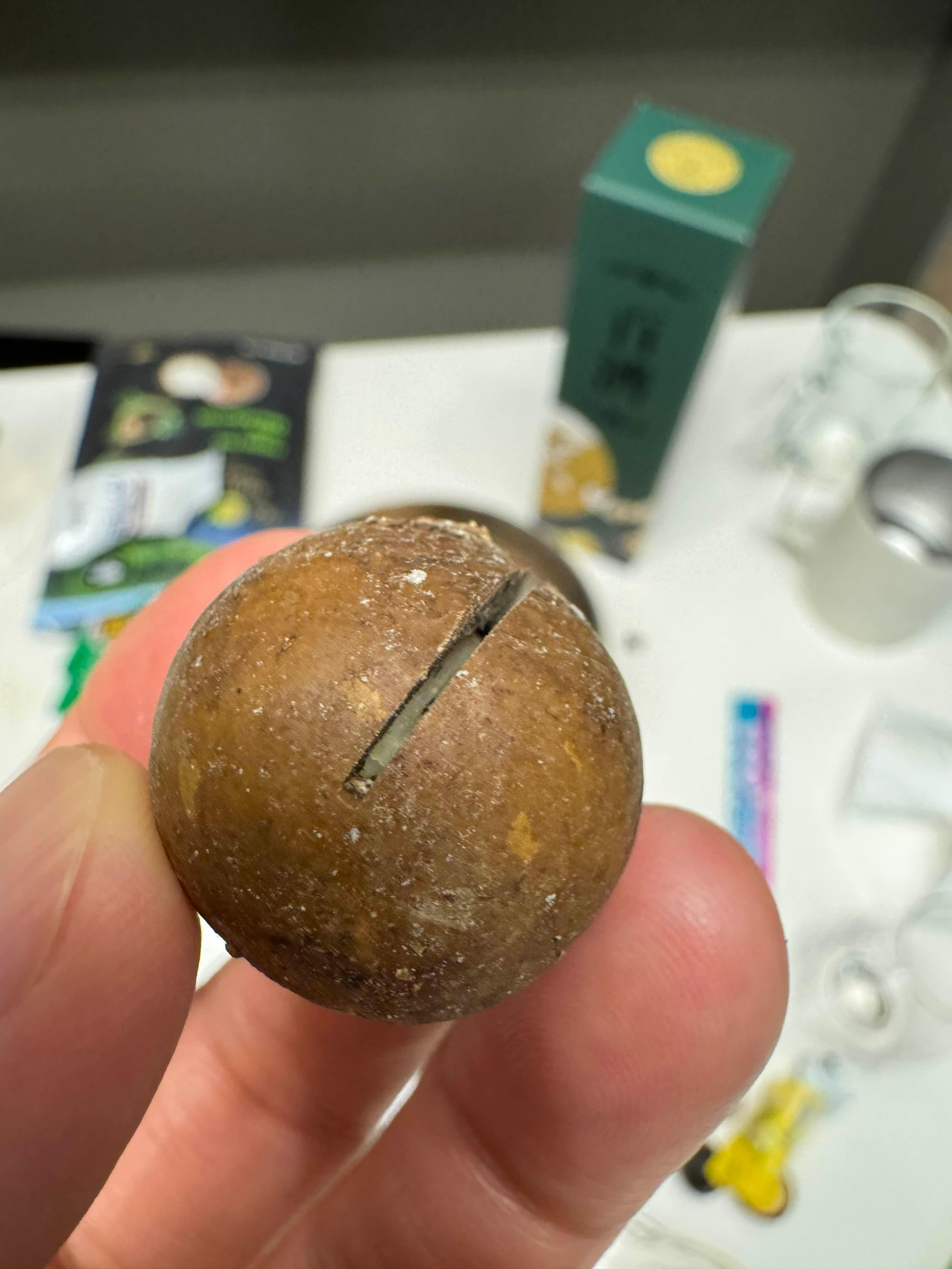 동글동글한 마카다미아 껍질에 작게 홈이 파여 있는데,