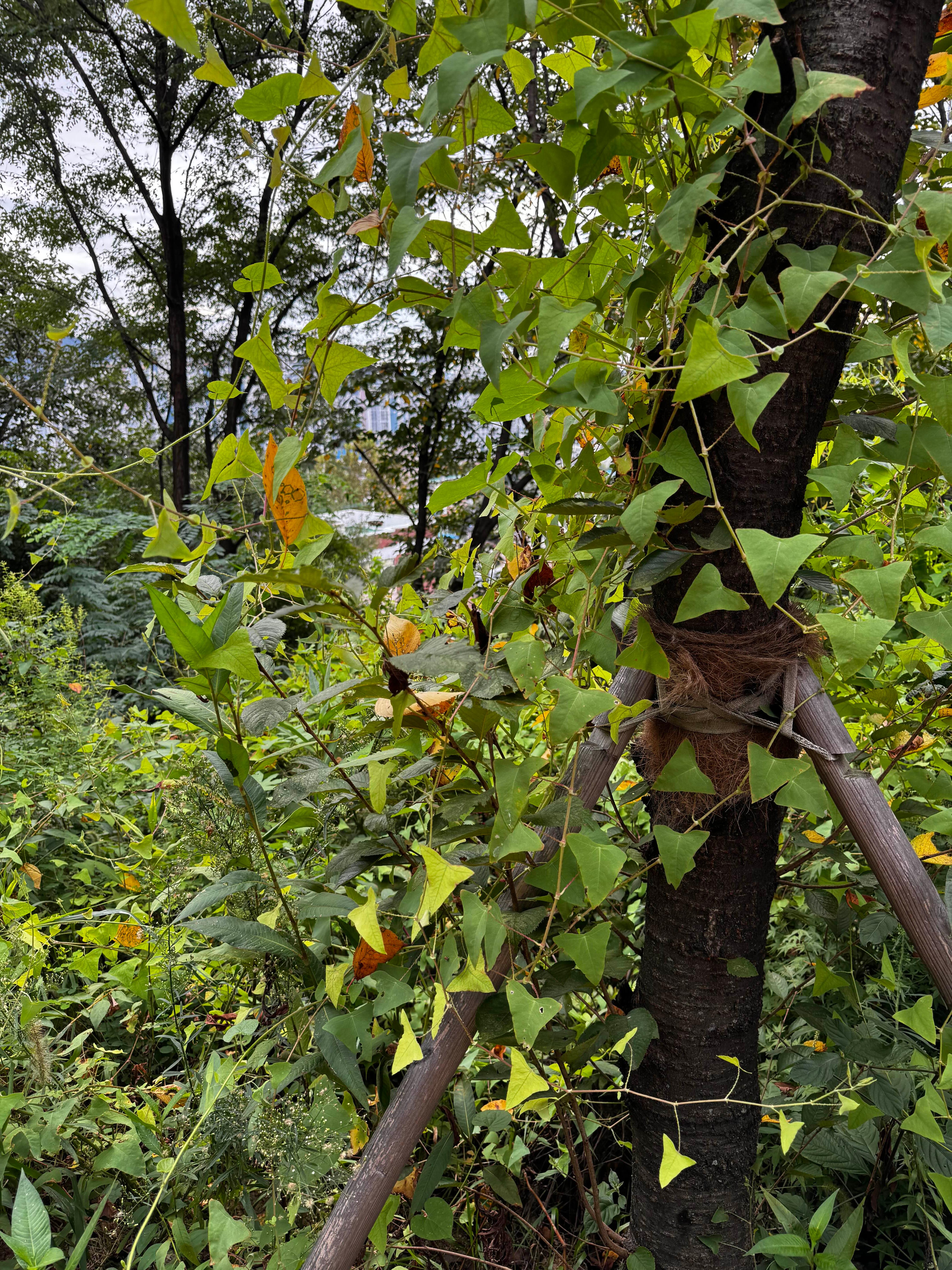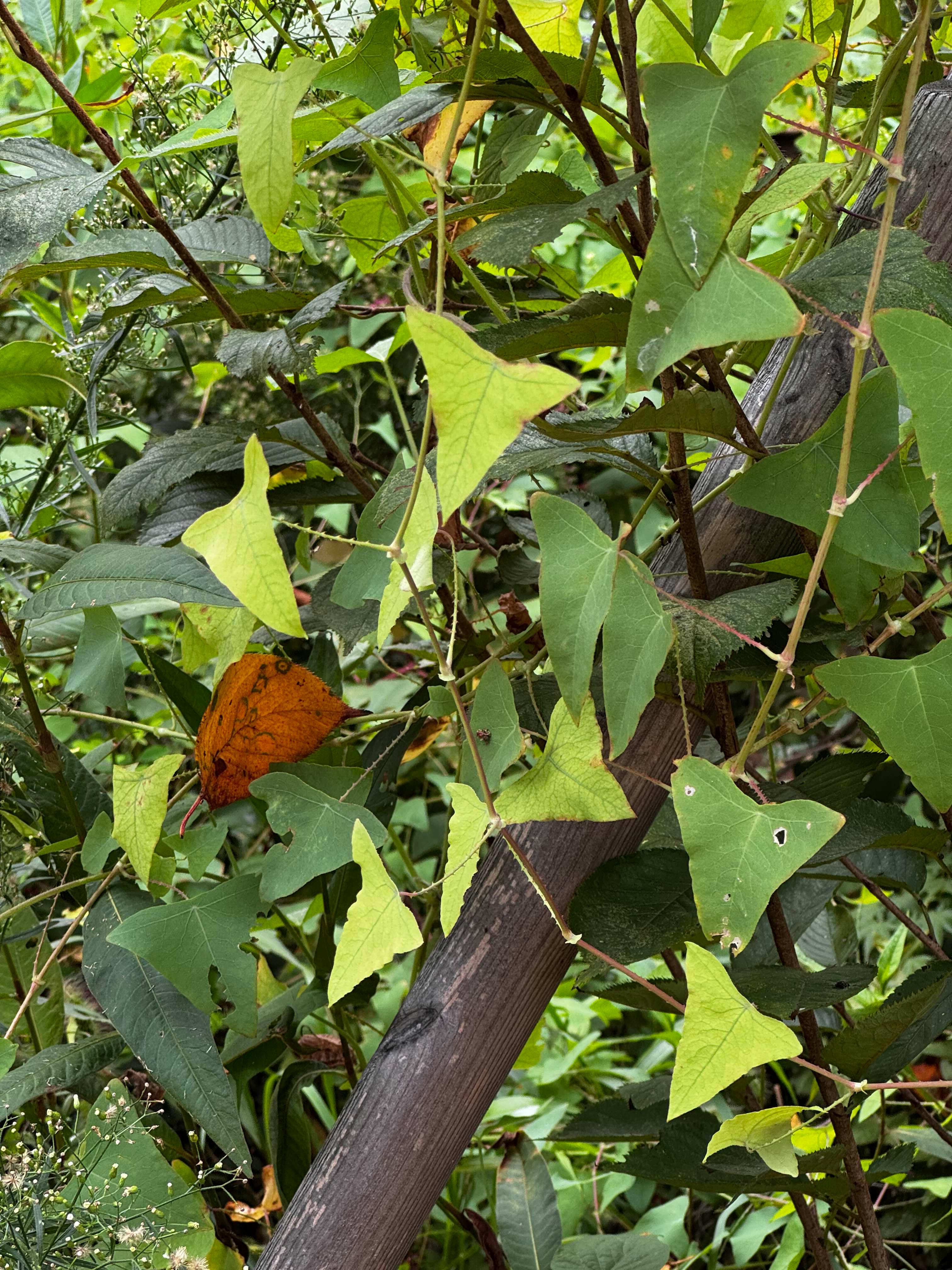 산책하다가 공원 구석에서 특이한 식물을 발견했습니다. 바로 며느리밑씻개였어요.