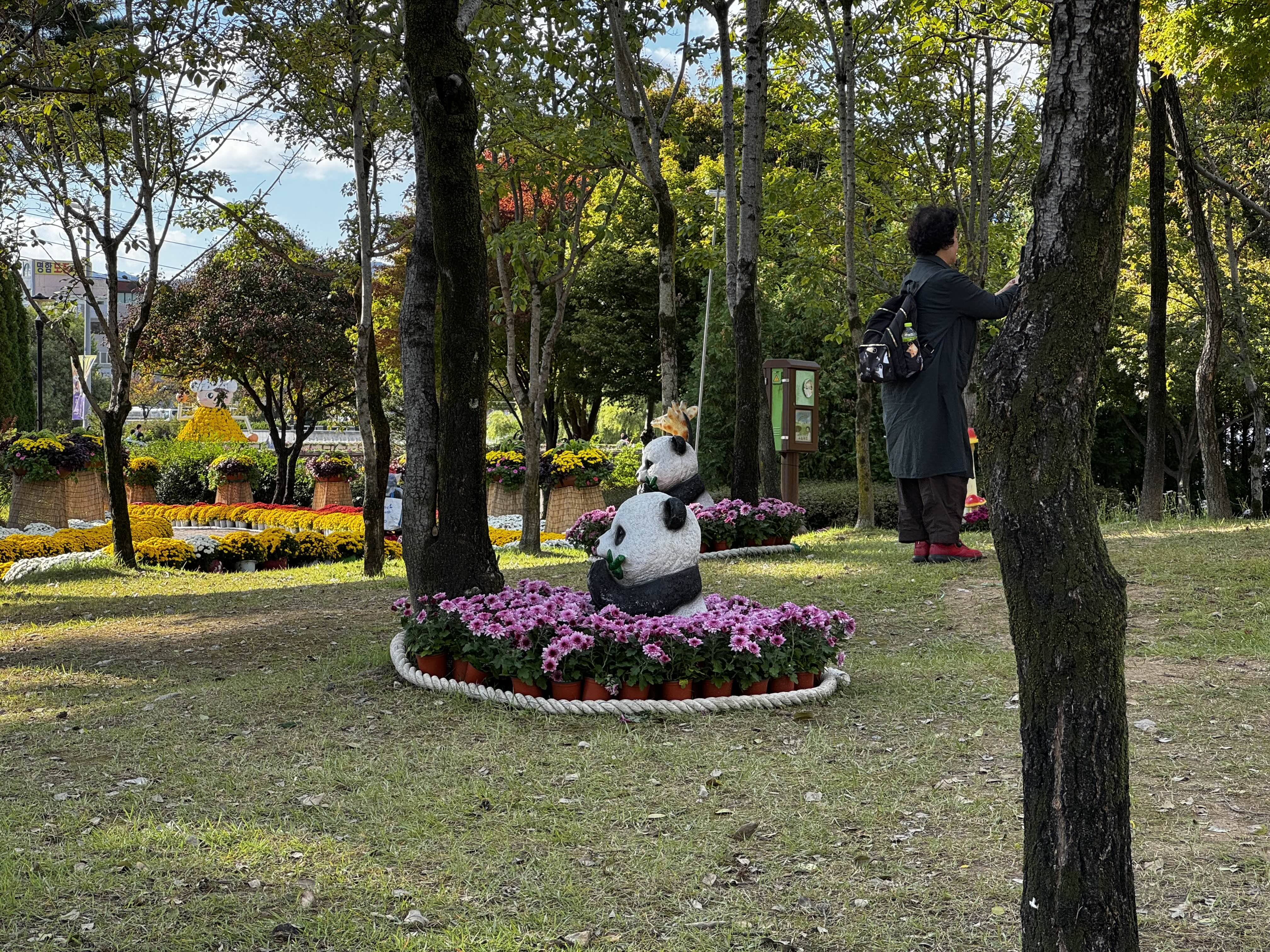 기존에 심어진 나무를 이용해서 판다와 잘 조화롭게 배치했네요.