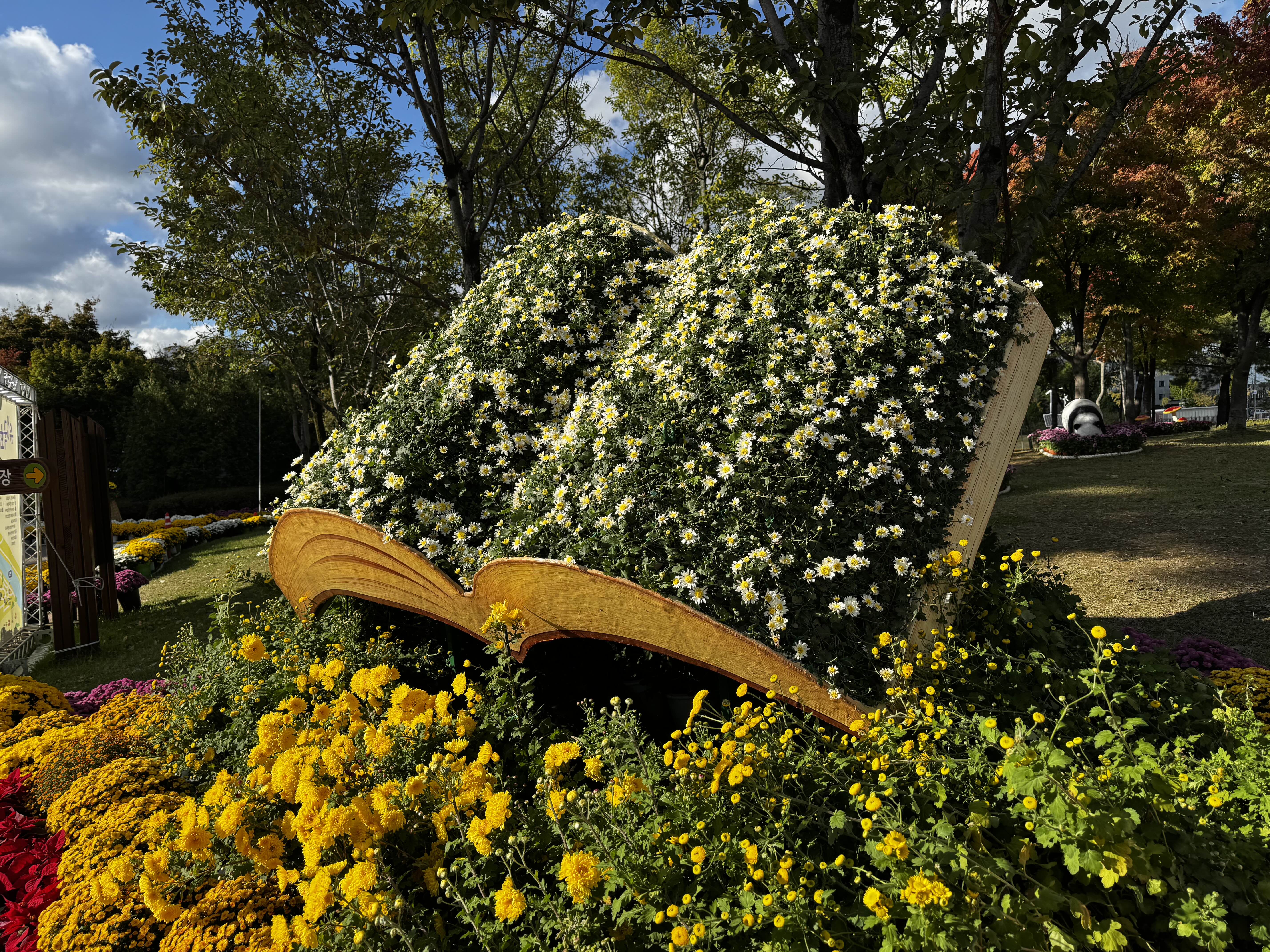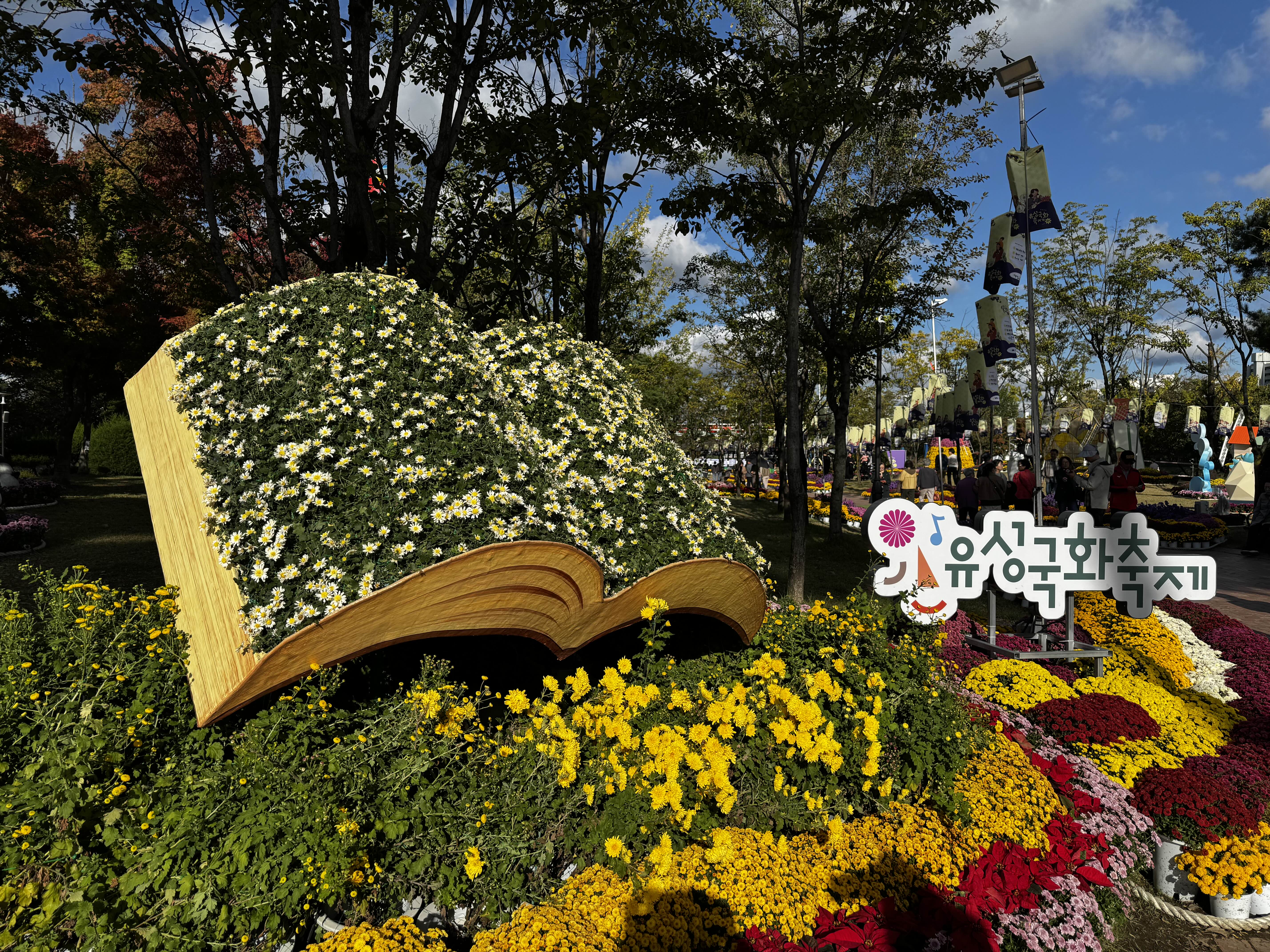 국화를 이용해서 펼쳐진 책을 형상화했습니다.