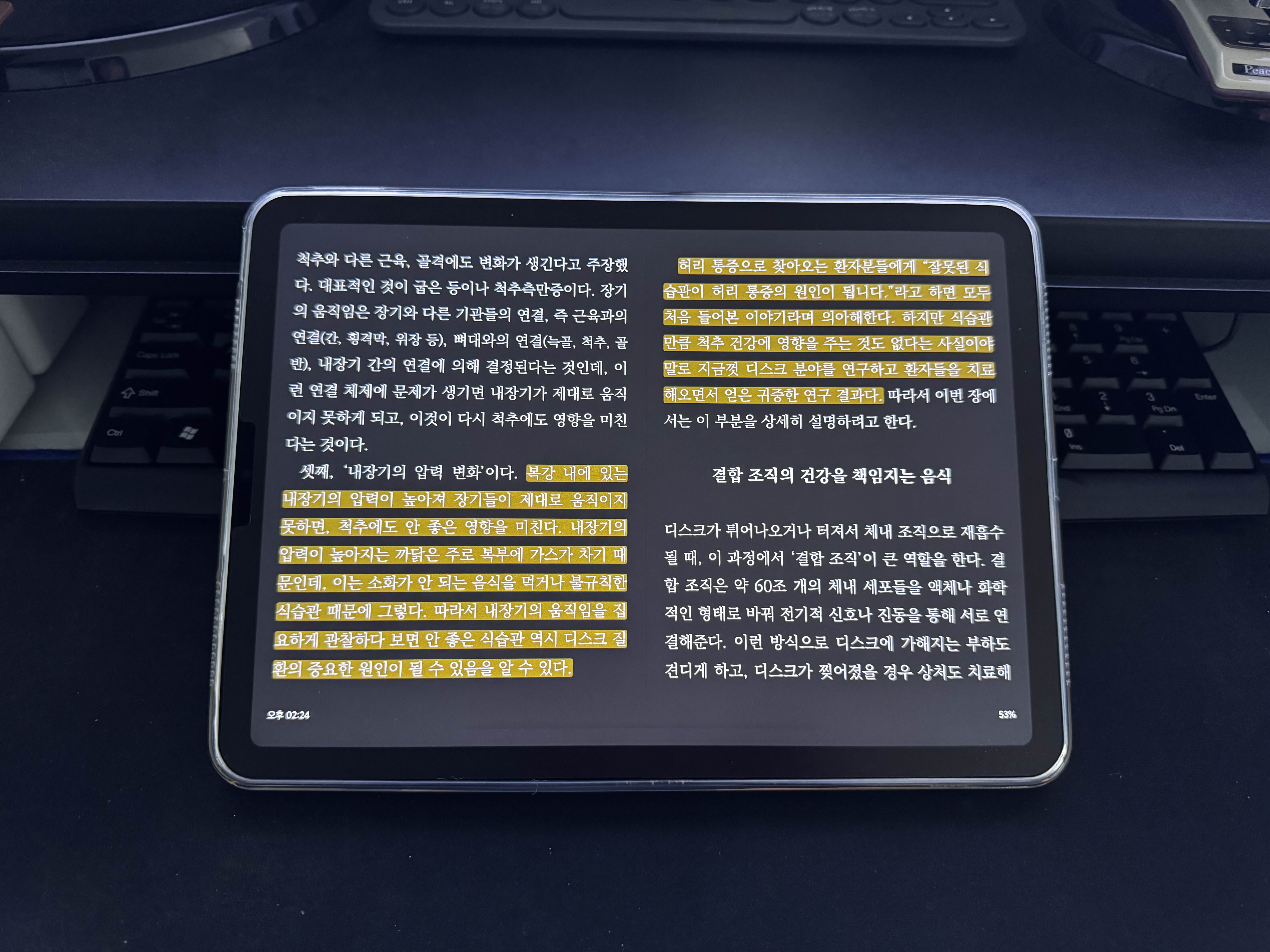 최근엔 와이프의 아이패드 에어로 읽고 있는데,