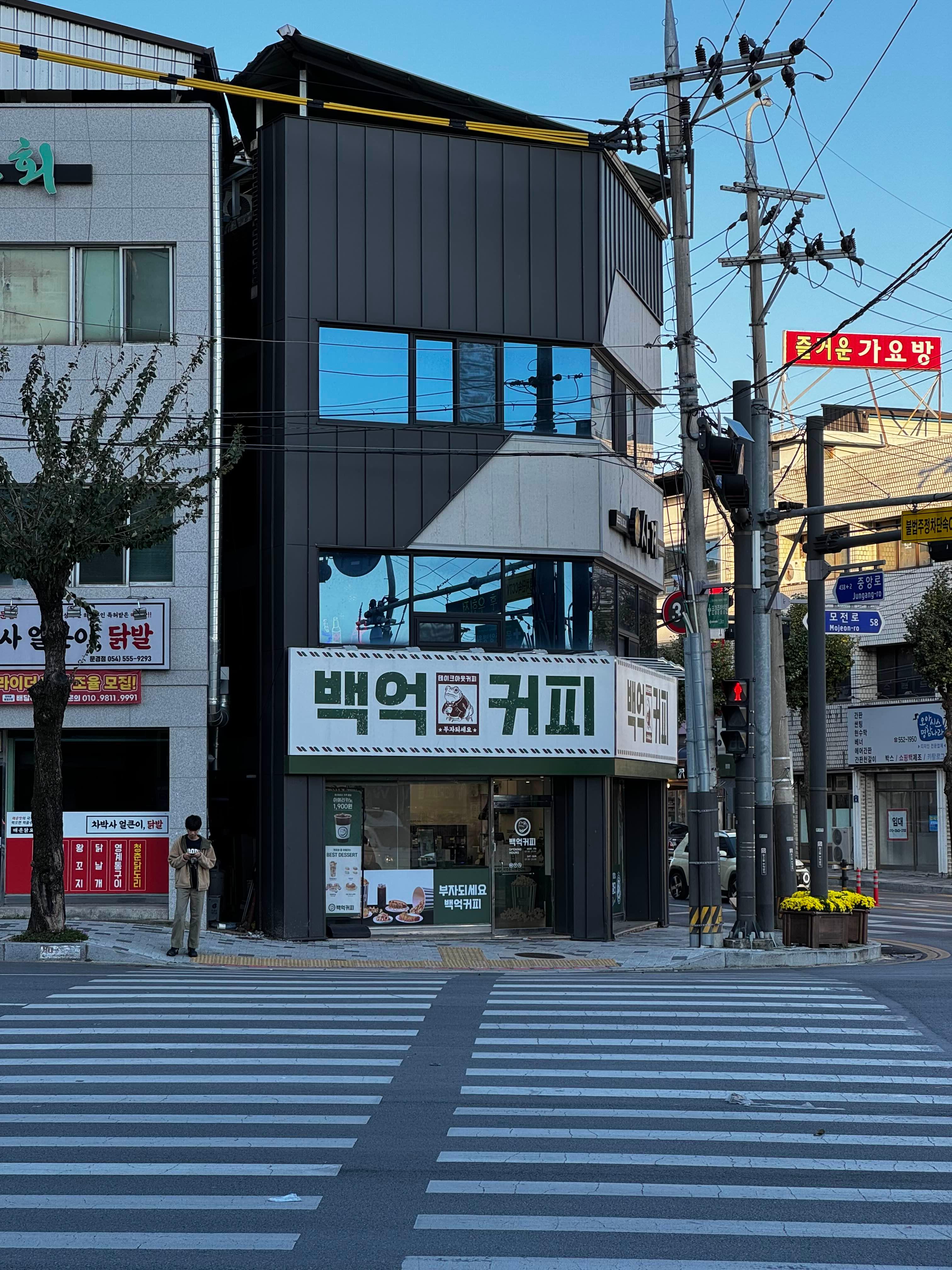 복권방 바로 옆에는 ‘백억커피’라는 카페가 붙어 있는데, 뭔가 로또 사면서 한잔 하라는 의도 같기도 해서 재미있었습니다.